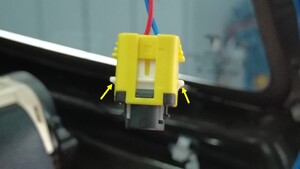 提起白色锁片,以断开右侧安全气帘电气线束连接器。
