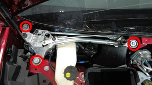 拆卸将雨刮器模块固定到车身的螺栓(3 个),然后将雨刮器模块置于一旁。