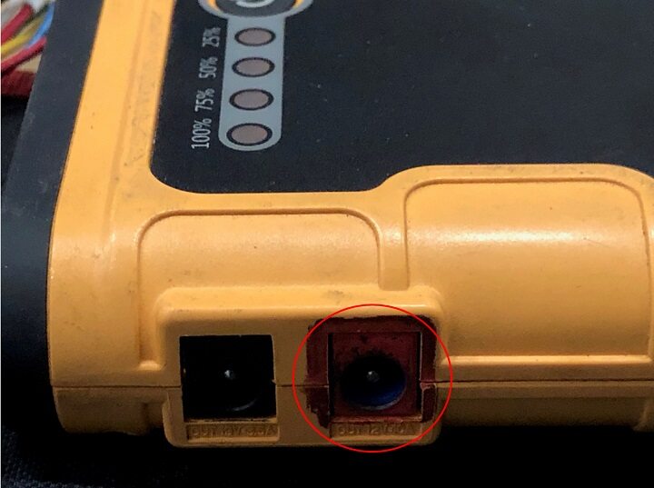 警告Do not place anything on top of the HV battery other than the high voltage “Danger” placard注2x connector, Press ''ON'' to turn ON the power bank. This is necessary to prevent the power bank from shutting down automatically if only connected to the BMS, which does not draw enough power for the power bank to remain powered / active.
