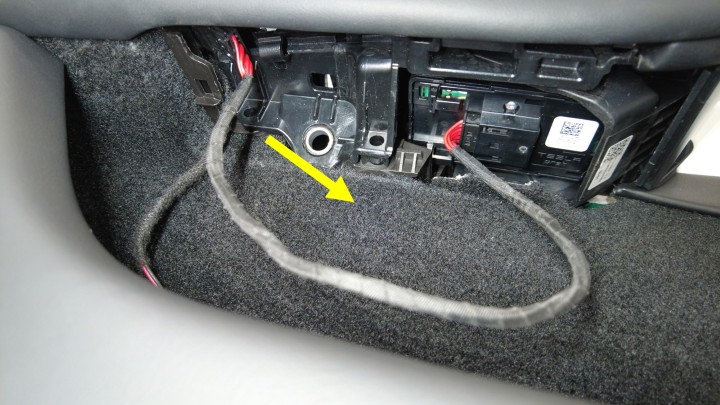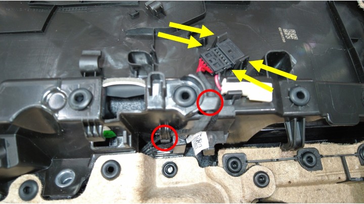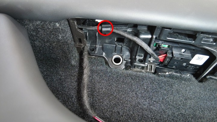 注确保线束穿过车门饰板。