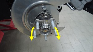 安装将左后制动盘固定到左后轮毂轴承的螺栓。