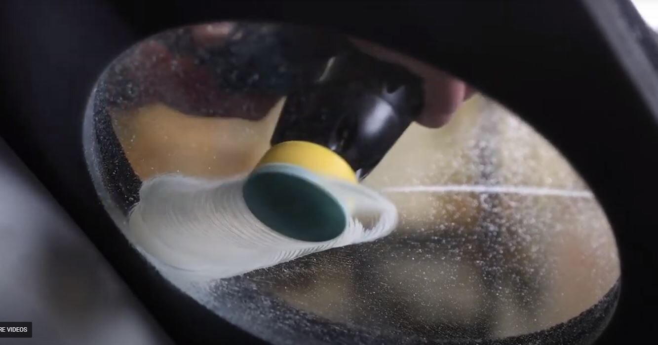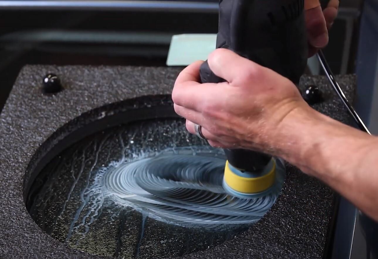 - Place the polishing disk flat on the glass.