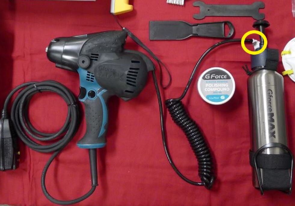 Remove the polishing disk and backer pad from the Gforce Max tool.