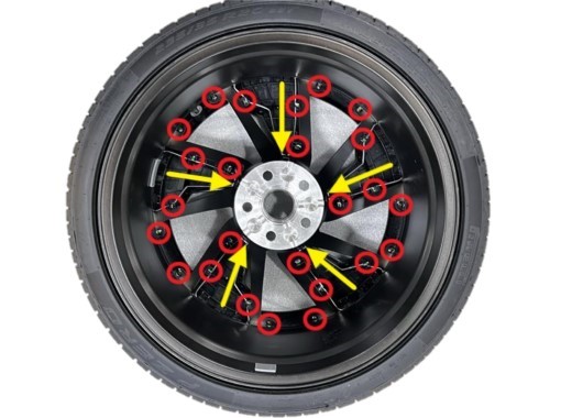 NoteFollow install press sequence for each wishbone aero insert, align wishbone aero insert into inboard of wheel and push insert in clockwise motion to snap into place, ensure all the clips are fully engaged and secured onto wheel assembly.
