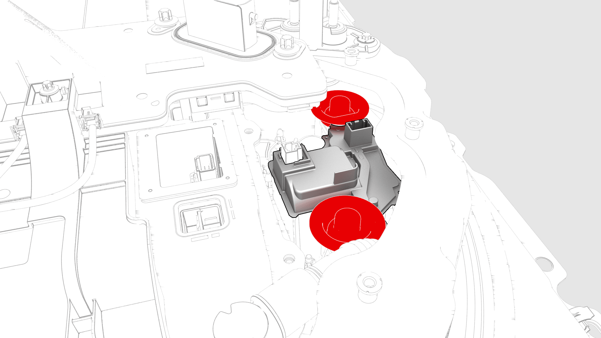检查高压电池正极触点开关端子顶部绝缘体罩的中央处: