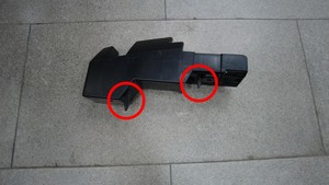 松开将饰板加固件锁定到支架前端的锁片(2 个),然后拉动饰板加固件以将其拆下。