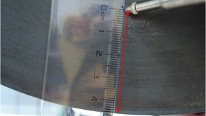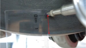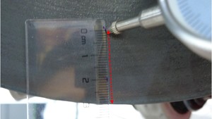 从左前制动盘端部向内量取 45 毫米,对齐数字指示器,然后将指示杆下压归零。