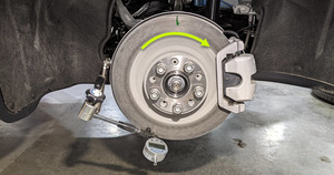 标记左后制动盘的顶部中心,以便确定起点。