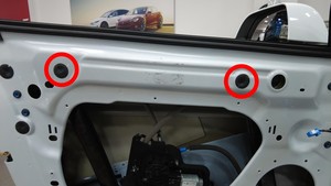 拆卸遮盖车窗升降器螺母检修孔的螺塞(2 个)。