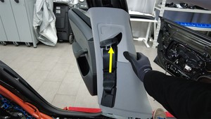 将安全带固定件穿过左侧 B 柱上饰板,然后将饰板从车上拆下。