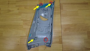 注将左侧 B 柱上饰板底端朝车内拉动,然后拉动饰板顶部以松开其余上部卡子。