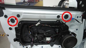 - 关闭 LH 前车门,然后完全升起车窗玻璃。