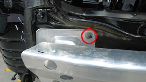 拆卸将后保险杠纵梁固定到车辆的左侧螺母(3 个),然后对右侧重复此步骤。