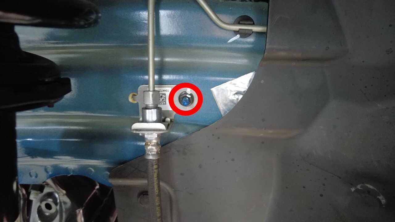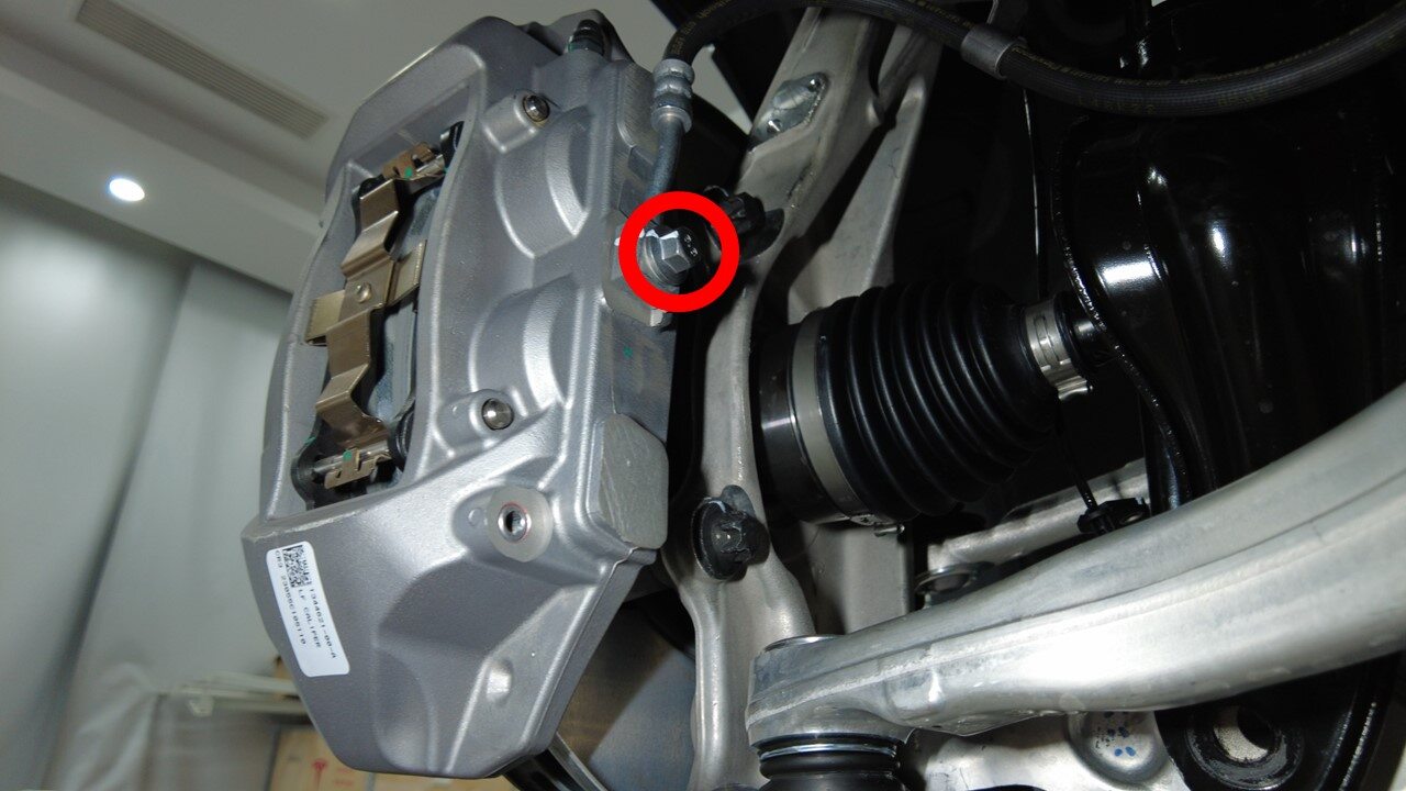 安装将新的右前制动软管固定到右前制动钳的螺栓。