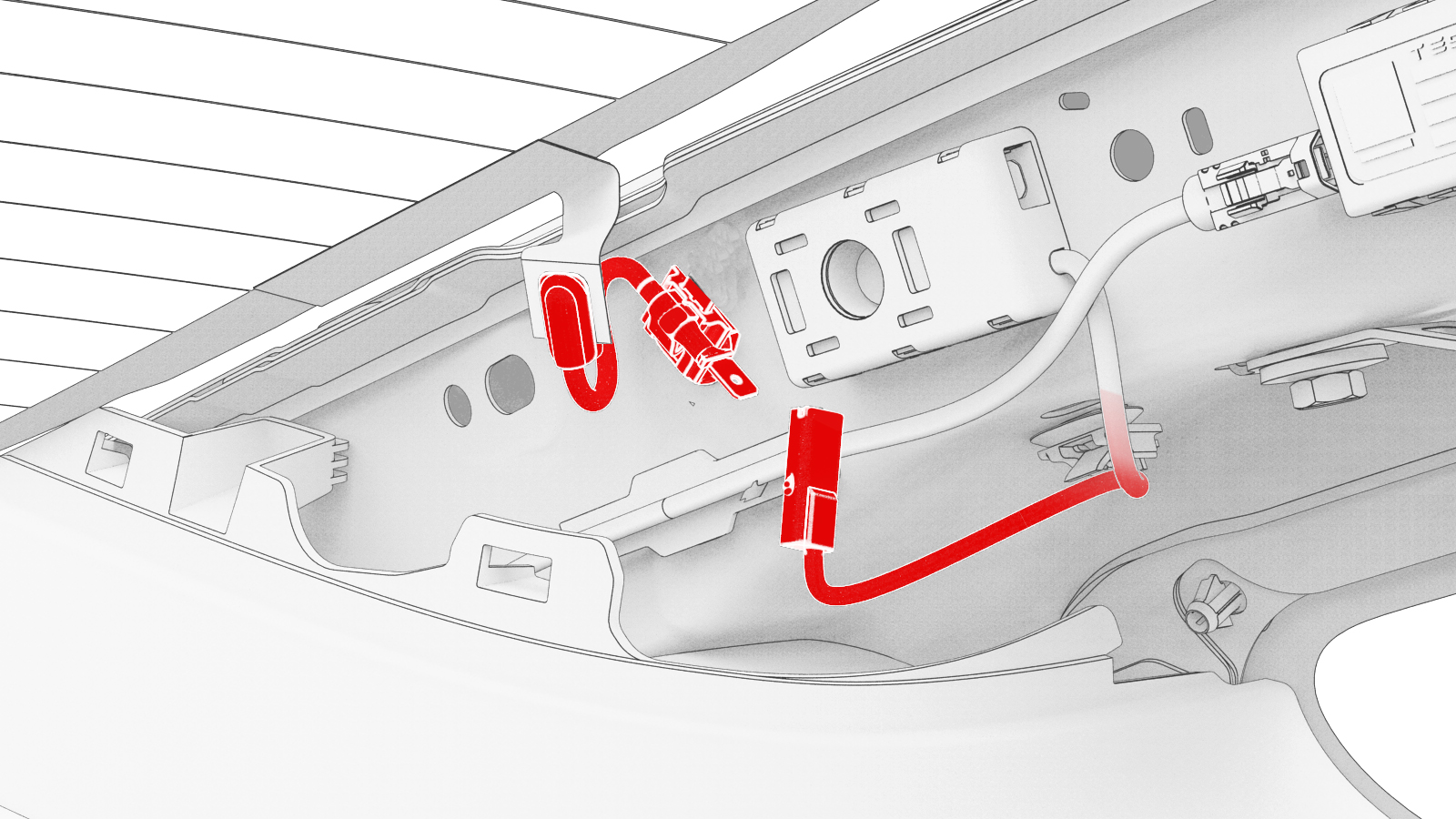 - 将尼龙绳拉入车辆内部的背光灯玻璃中。