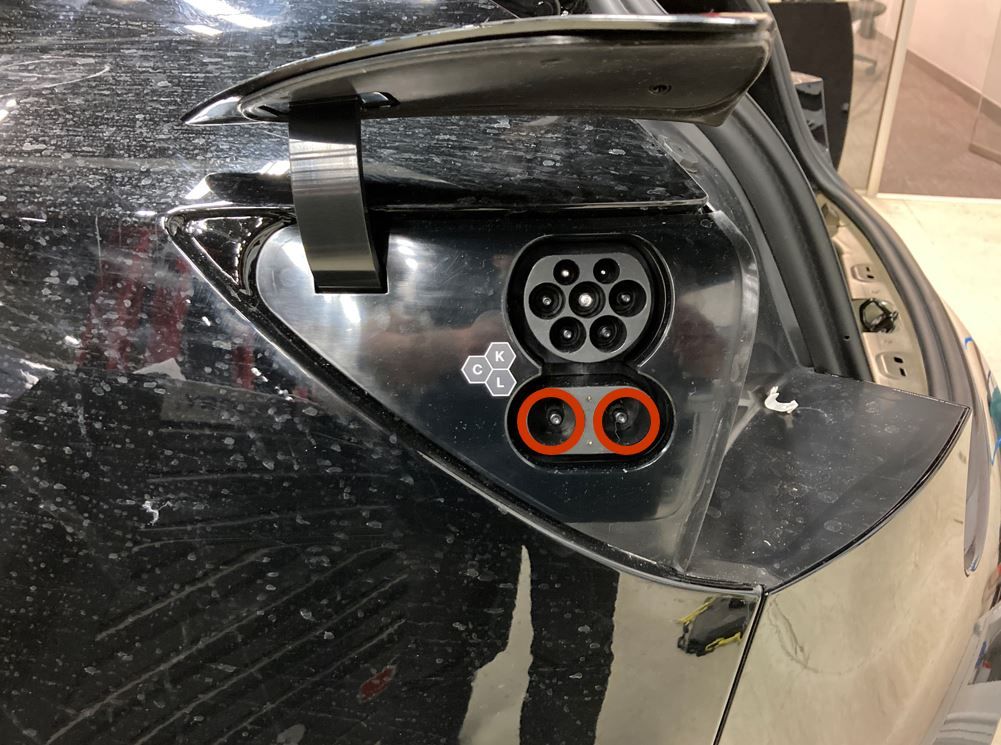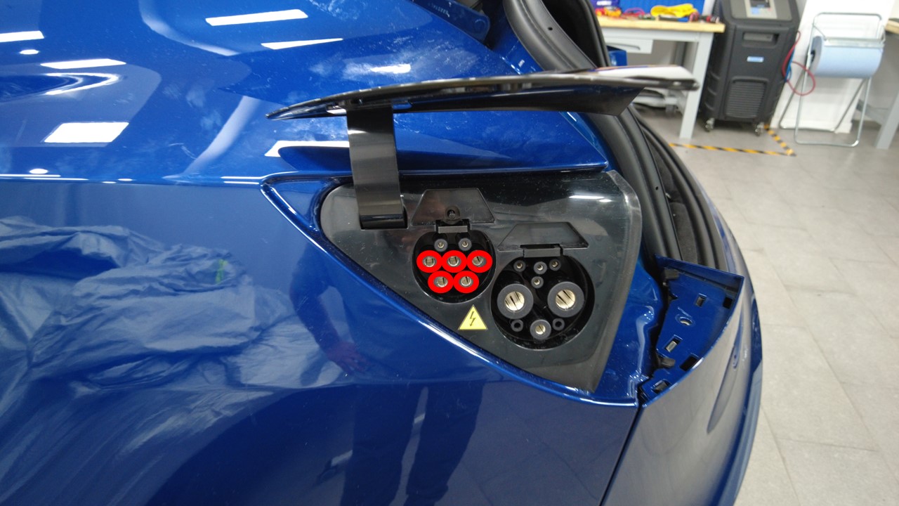 使红色正极超薄测试探针触碰图示中的充电连接器的每个端子,然后读取电压: