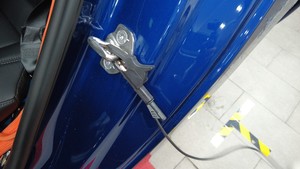 将黑色的负极鳄鱼夹连接到左后车门撞销。