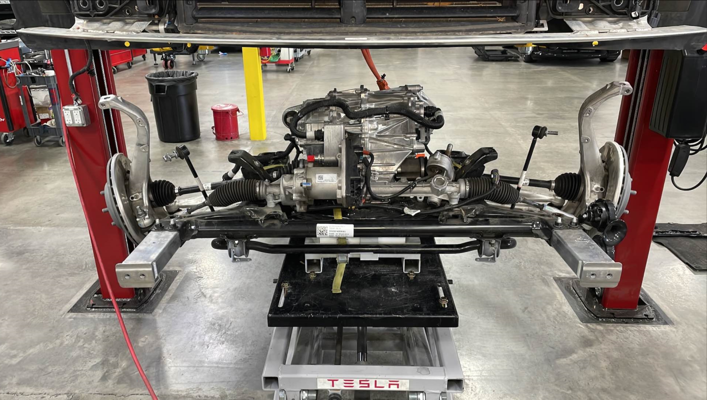 - 在协助下,升起前副车架举升工具以支撑前副车架。