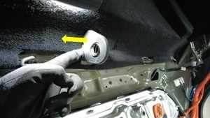 - 拆卸第二排座椅下部座垫。请参阅第二排座椅坐垫 ((拆卸和更换))。