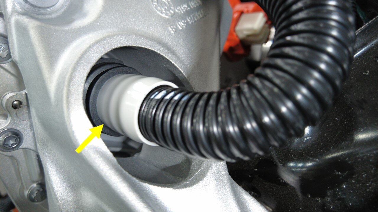 将冷却液排放和加注适配器从位于变流器底部的冷却液进口软管上断开。