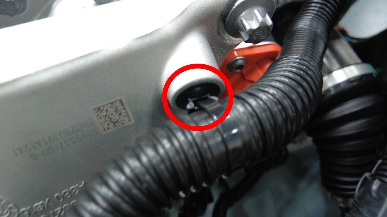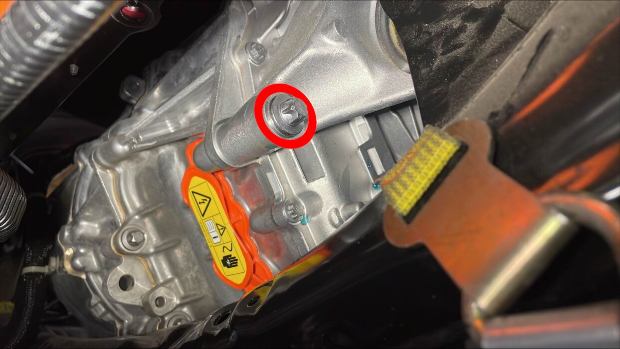 安装将驱动单元固定到副车架的左侧支座螺栓。