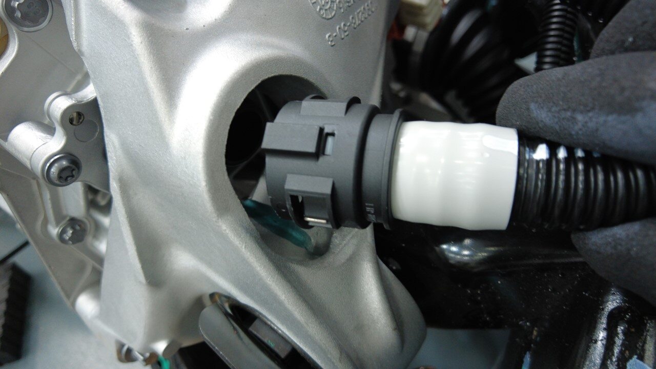 将冷却液排放和加注适配器连接到位于变流器底部的冷却液进口软管。