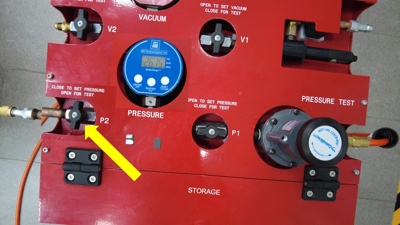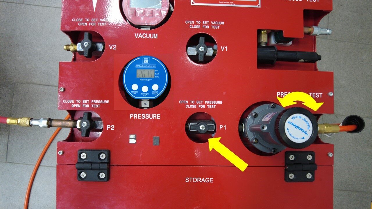 打开调整器阀门 P1,然后将调整器缓慢调节至 26 psi。