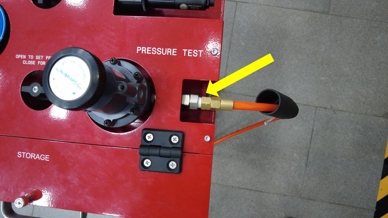 注将压力测试适配器连接到可调压空气管路适配器。确保锁片完全就位。