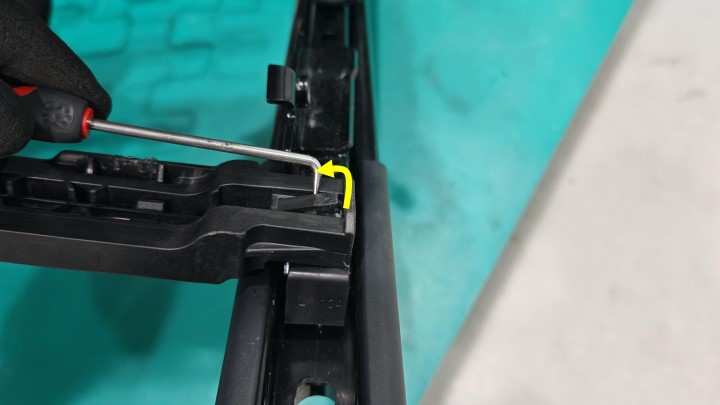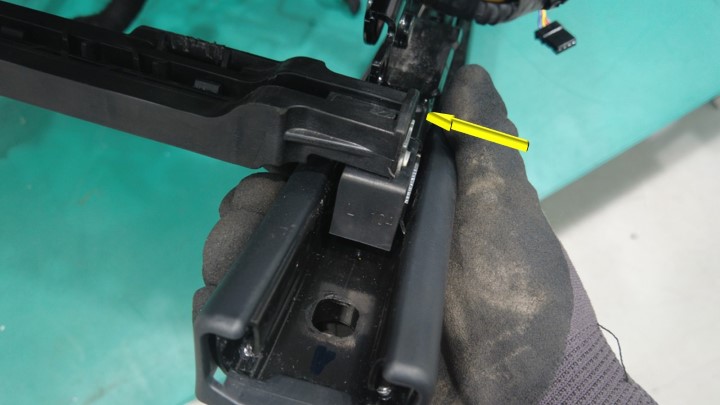 在协助下,将滑轨电机桥架从内侧座椅滑轨上松开。
