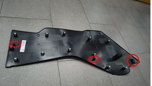 安装将中控台侧面板固定到中控台的卡子(12 个)、固定夹(2 个)和锁片,请从侧面板前部开始逐步向后安装。