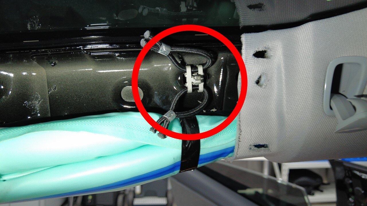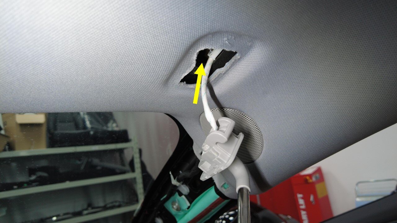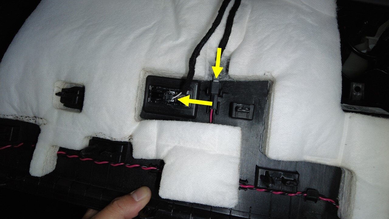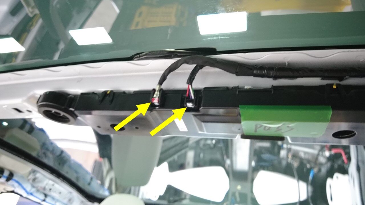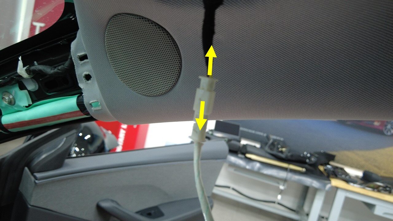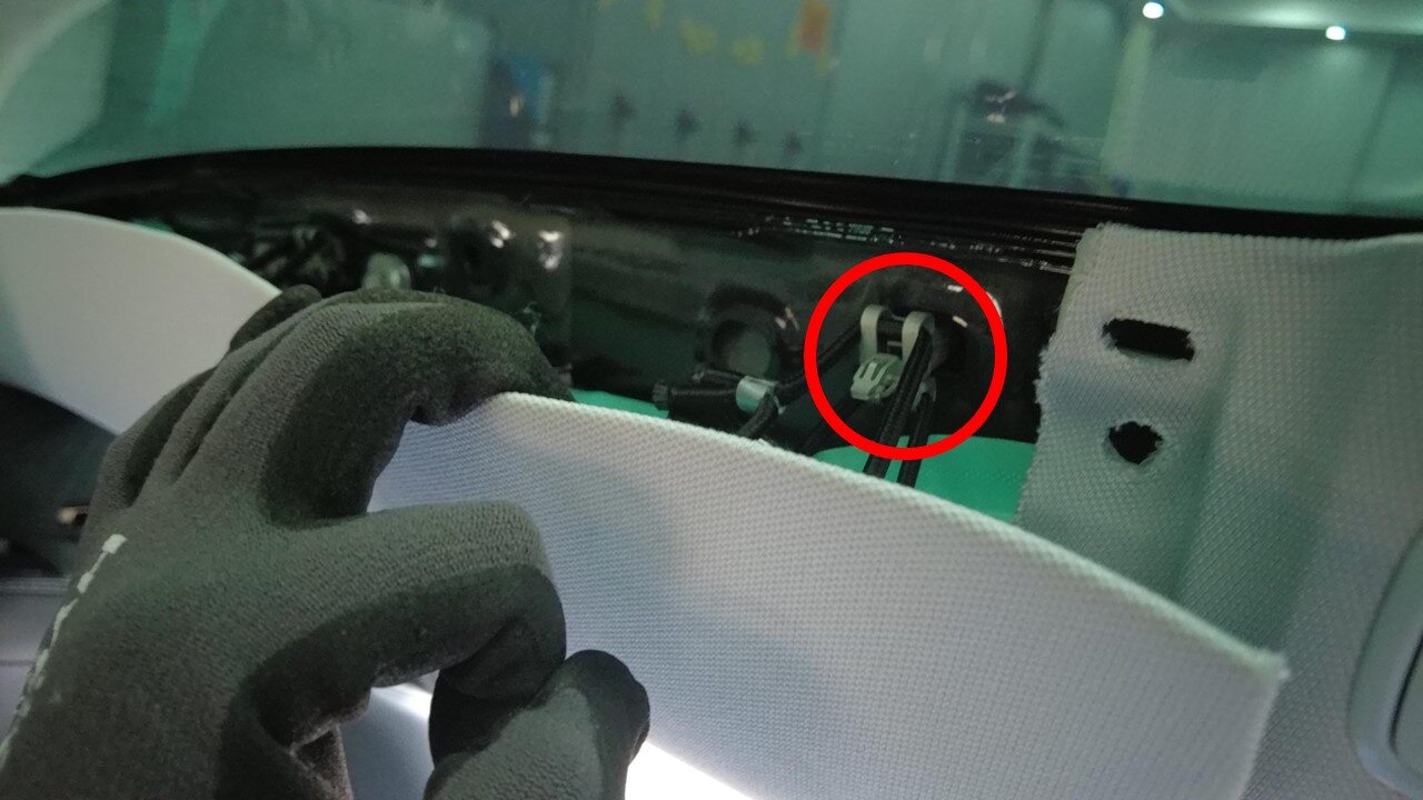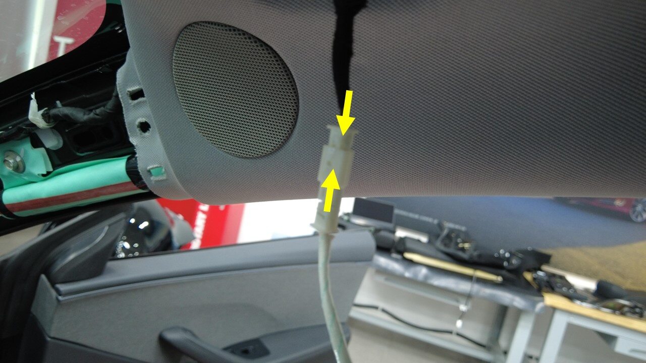 注First push the connector and wire harness backward, then fold sun visor to the closed and folded down position but do not latch in place