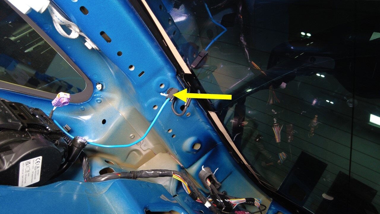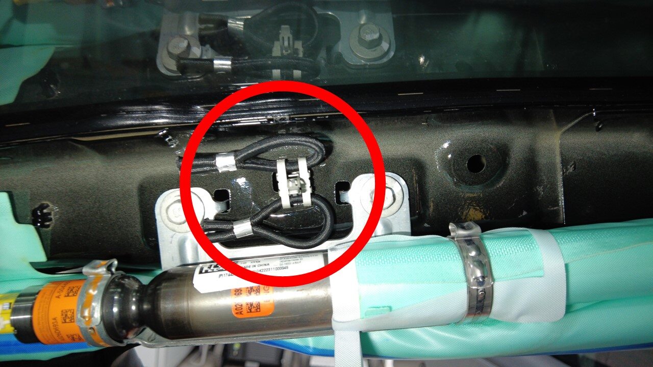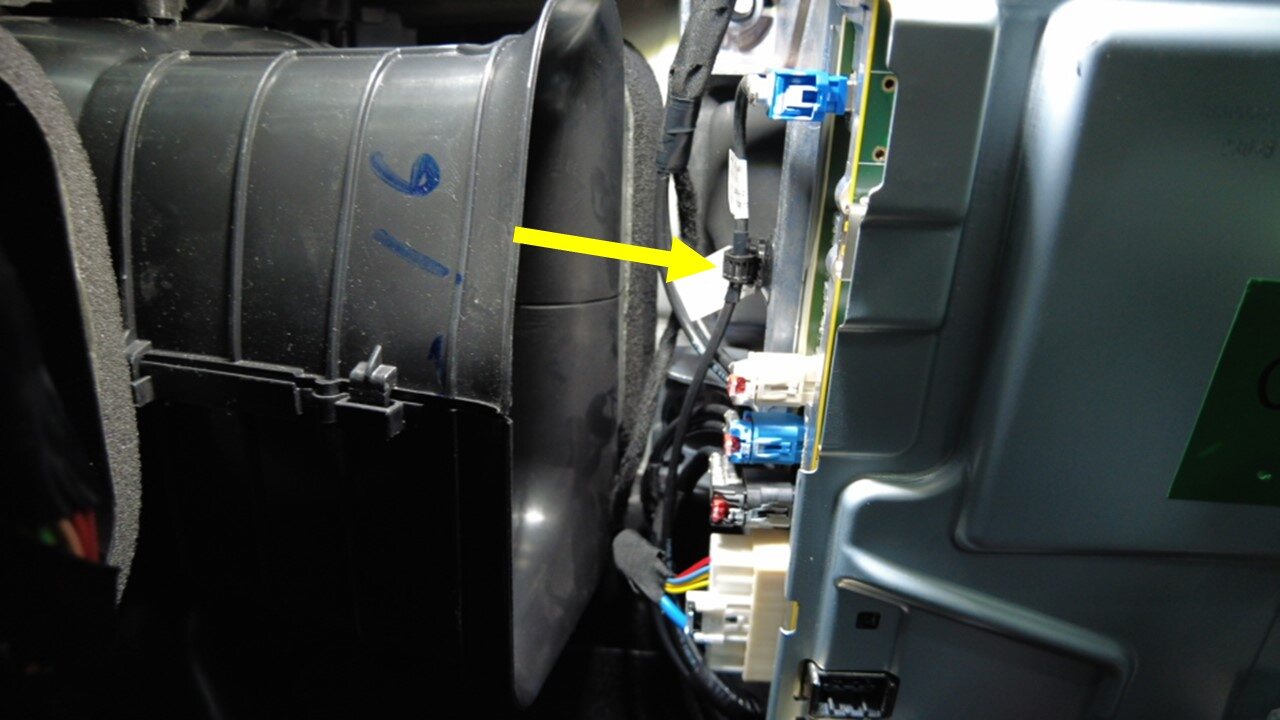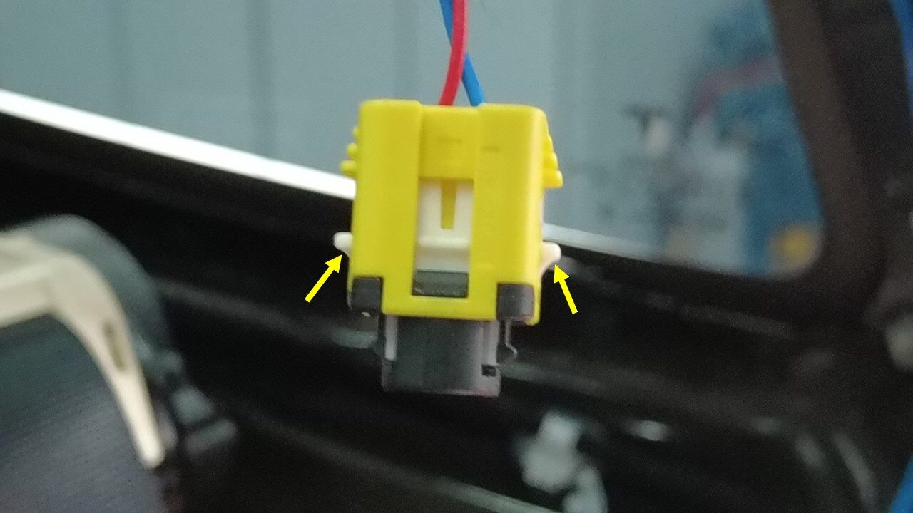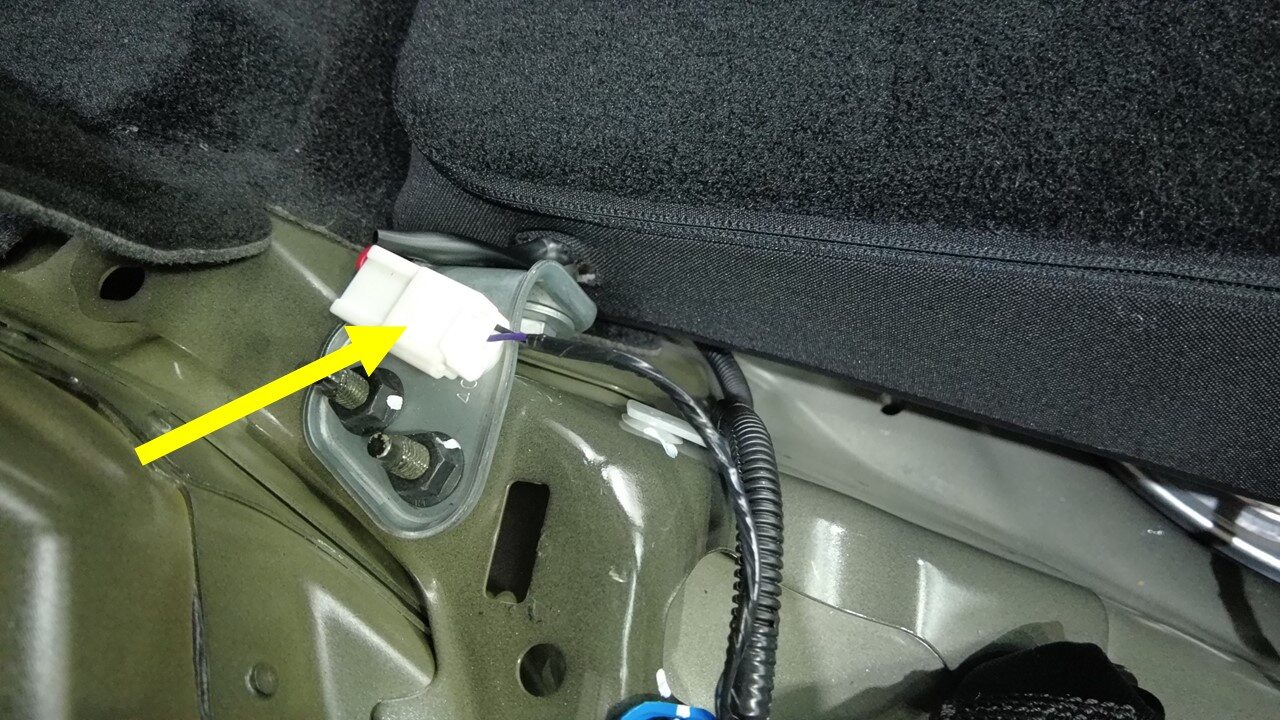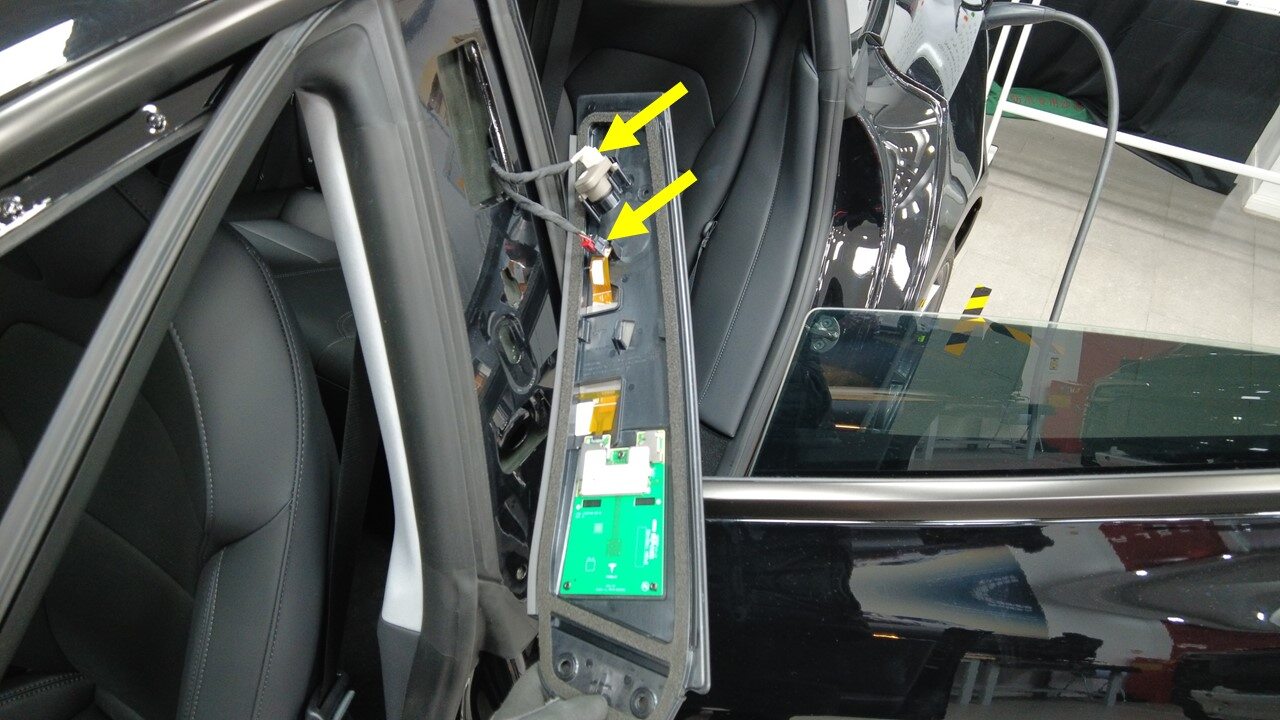注First push the connector and wire harness backward, then fold sun visor to the closed and folded down position but do not latch in place