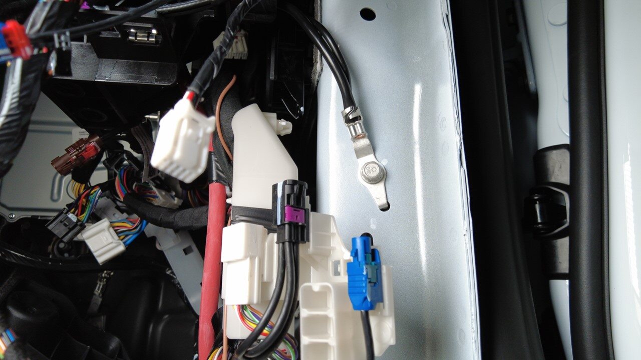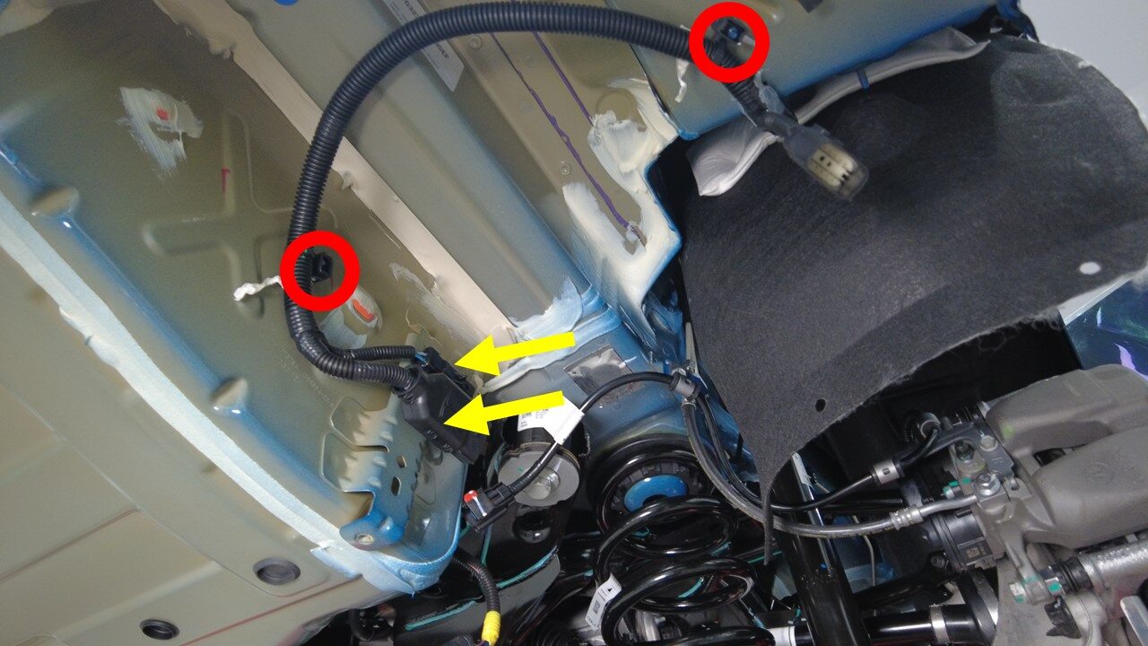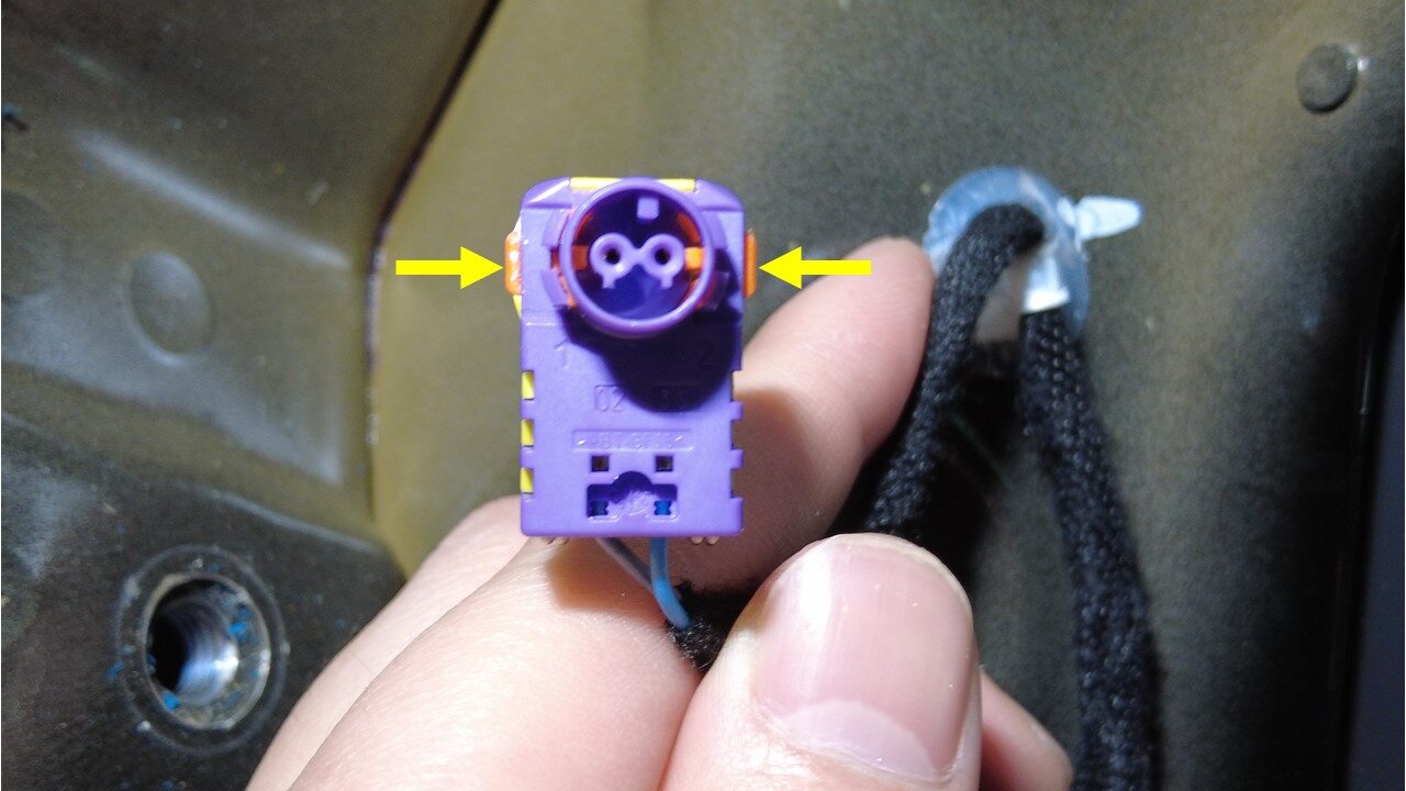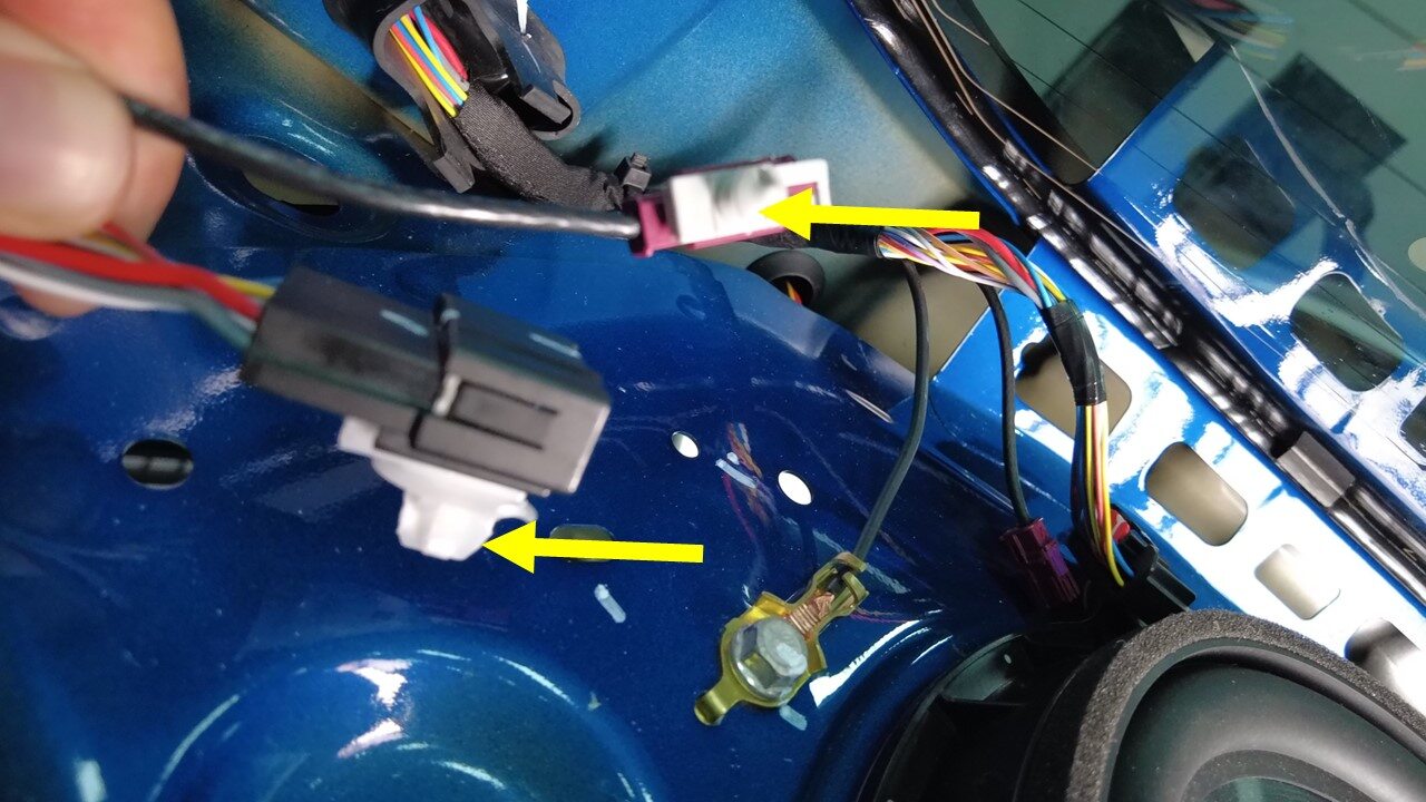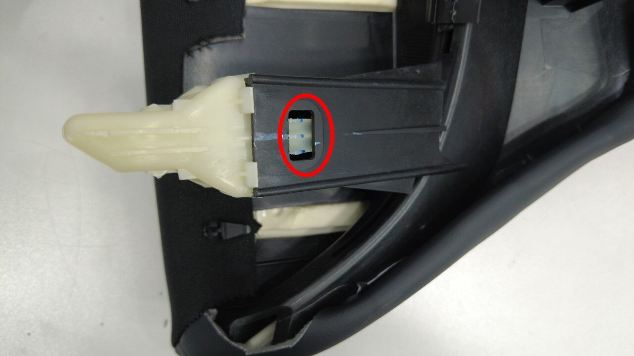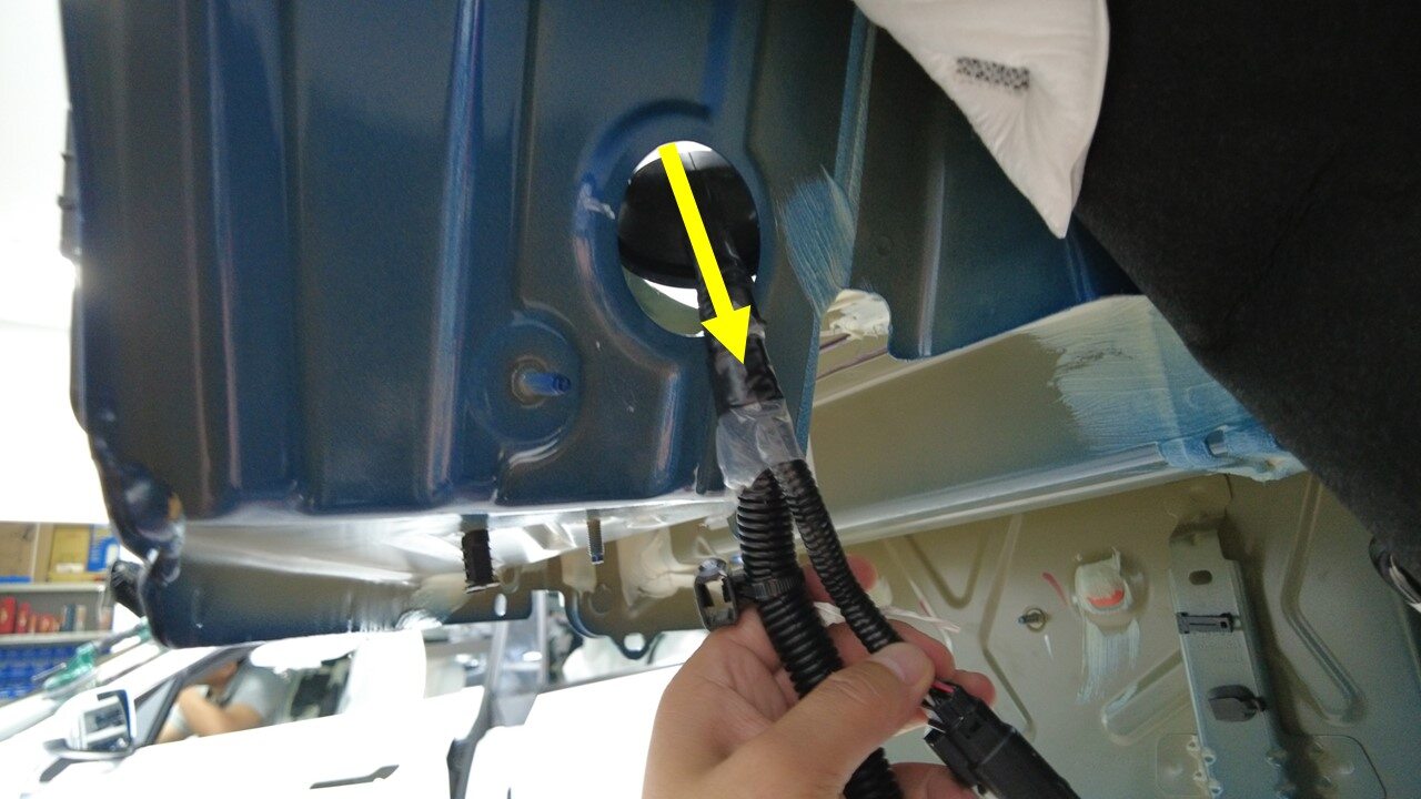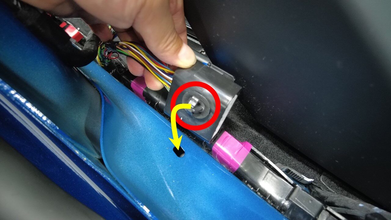注First push the connector and wire harness backward, then fold sun visor to the closed and folded down position but do not latch in place