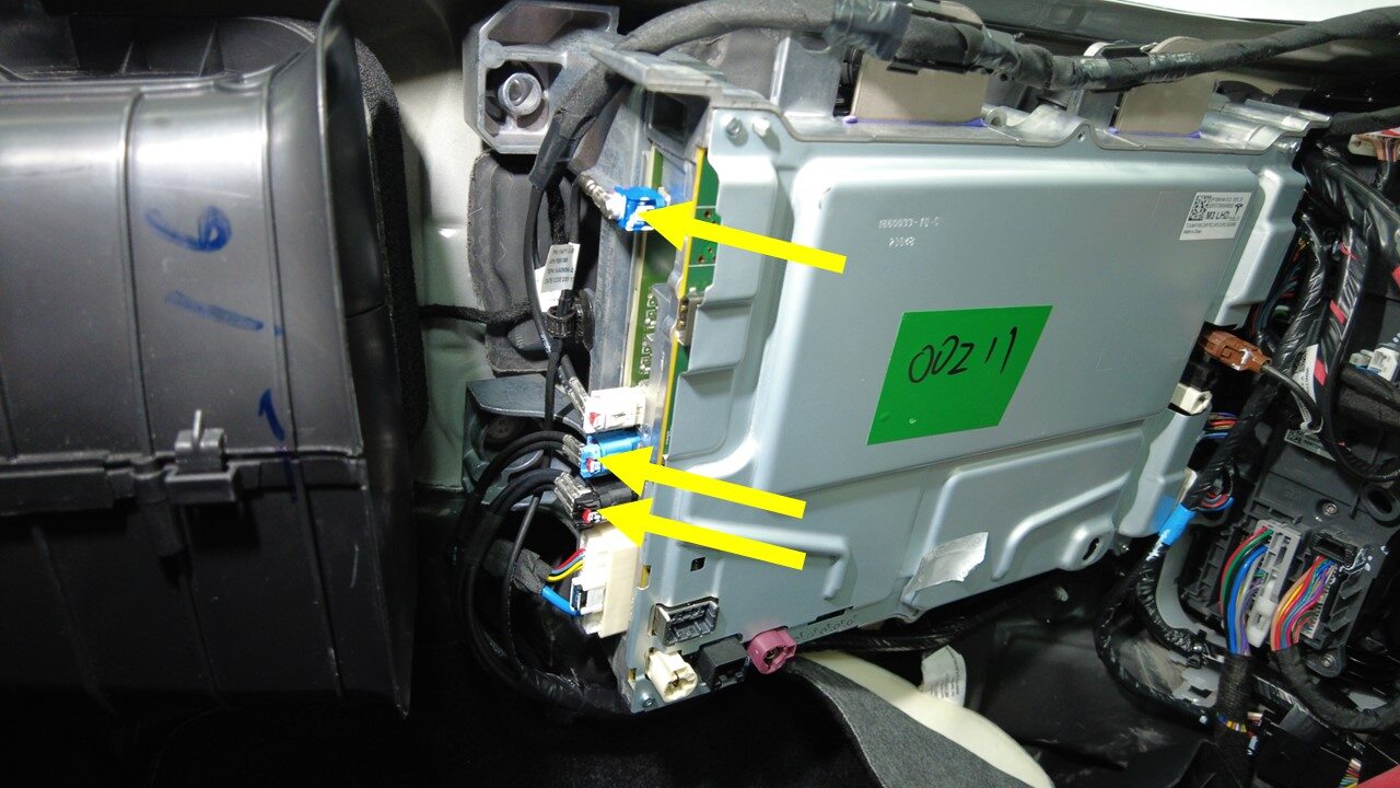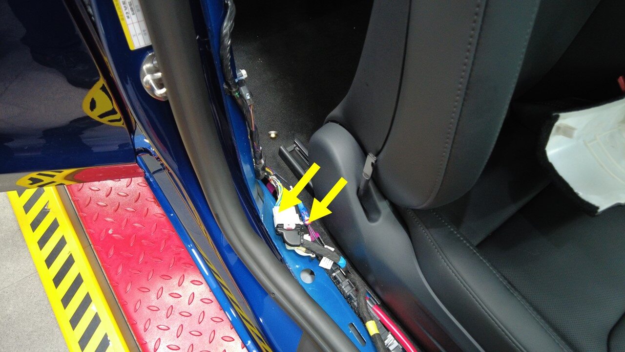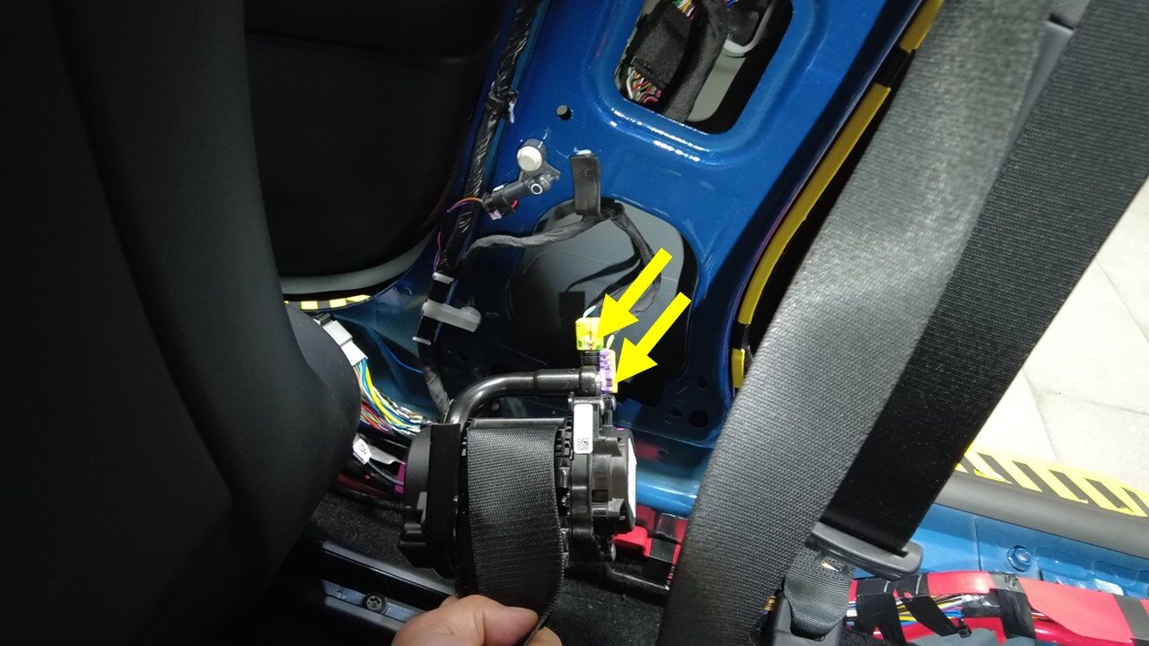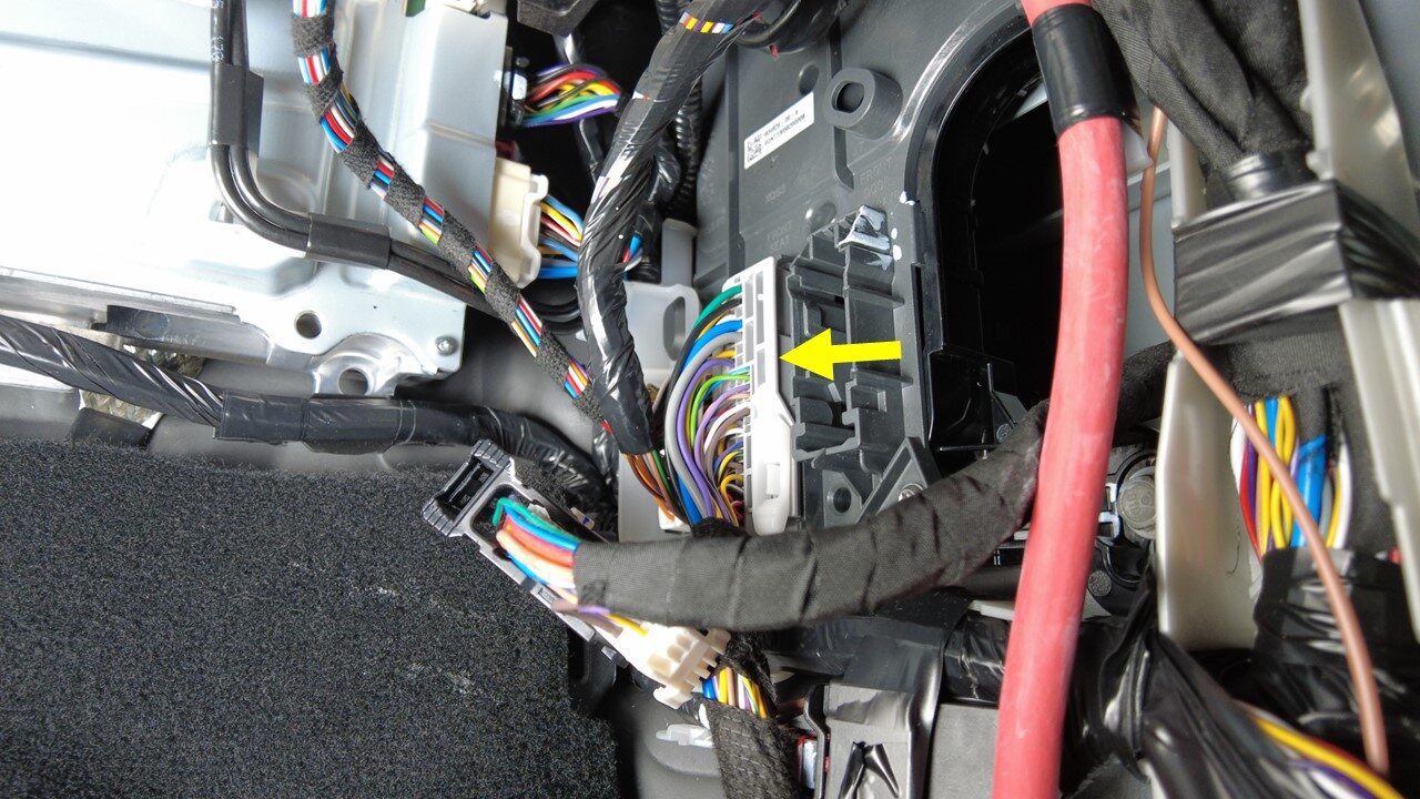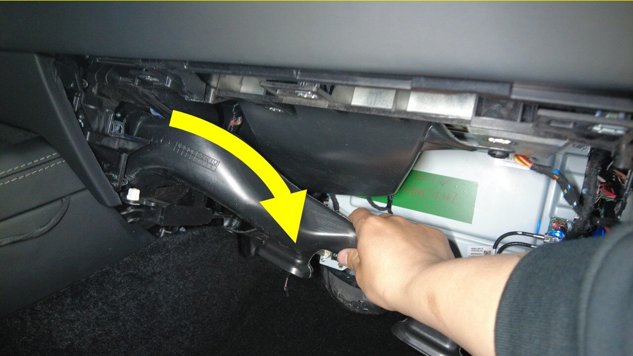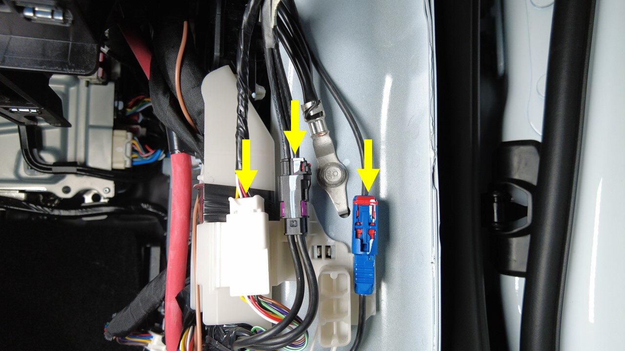 注First push the connector and wire harness backward, then fold sun visor to the closed and folded down position but do not latch in place