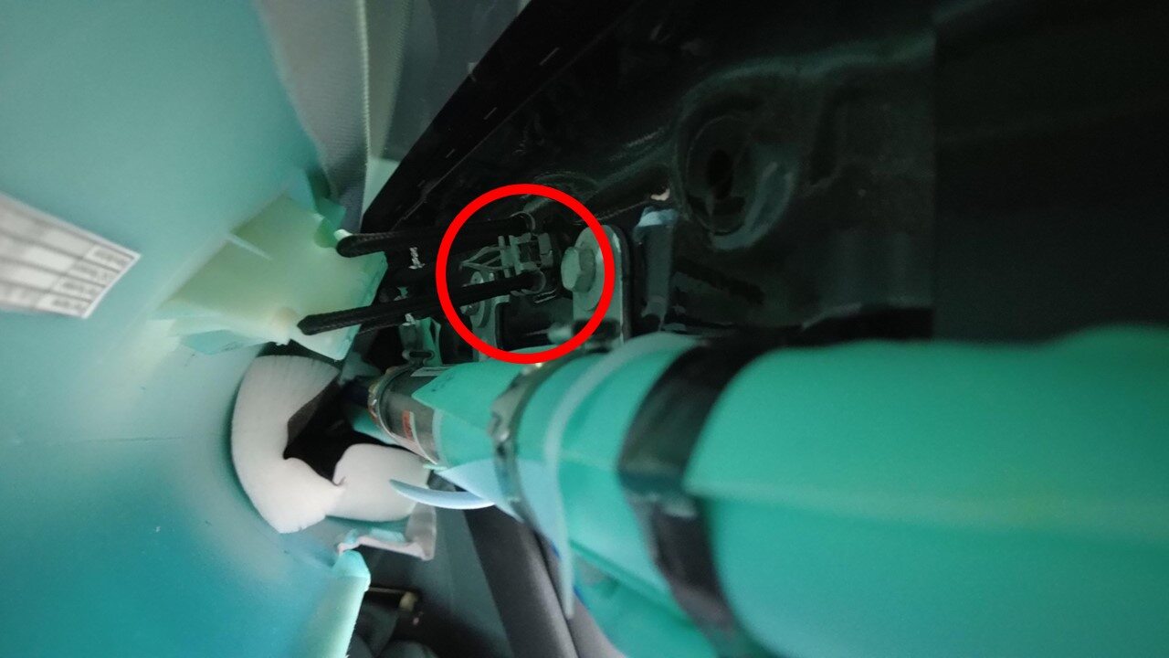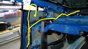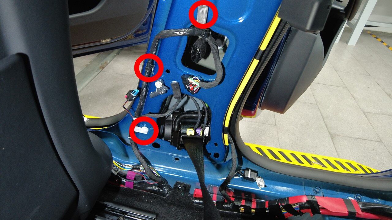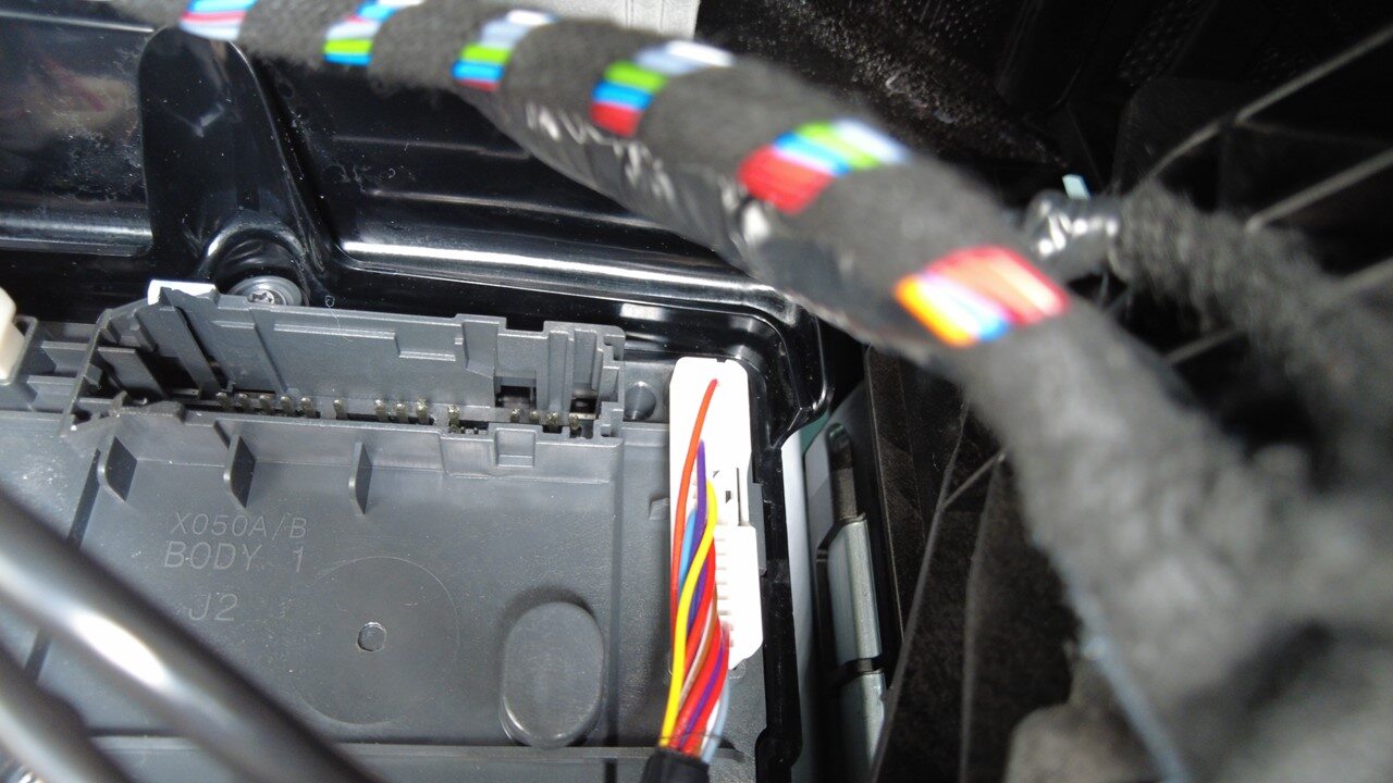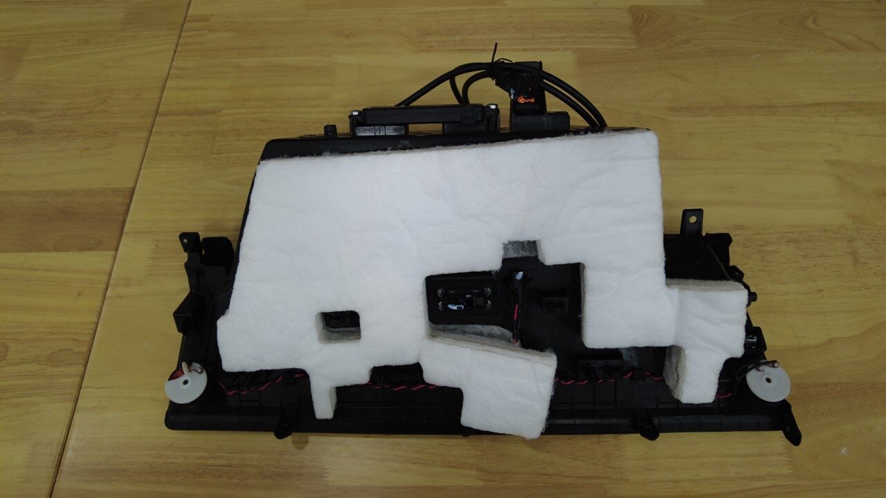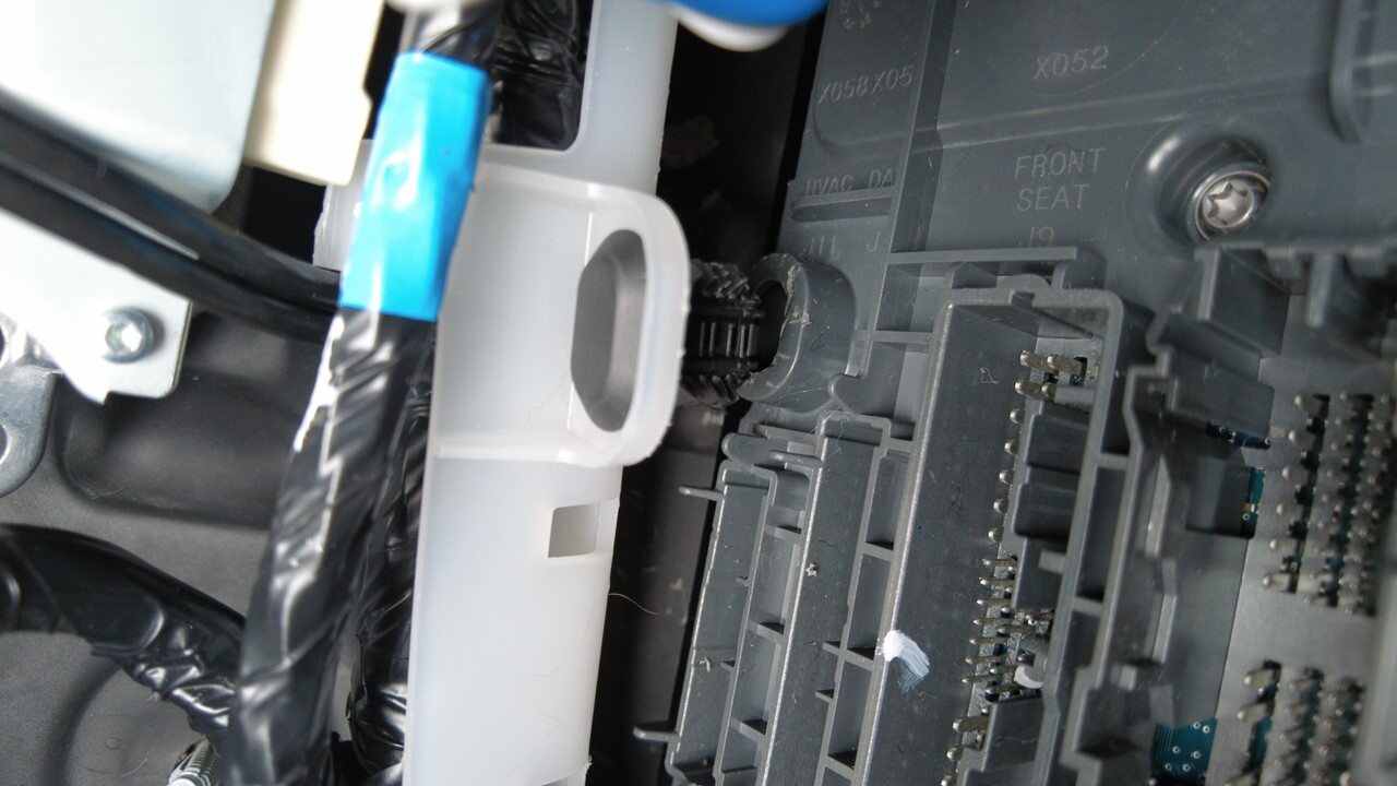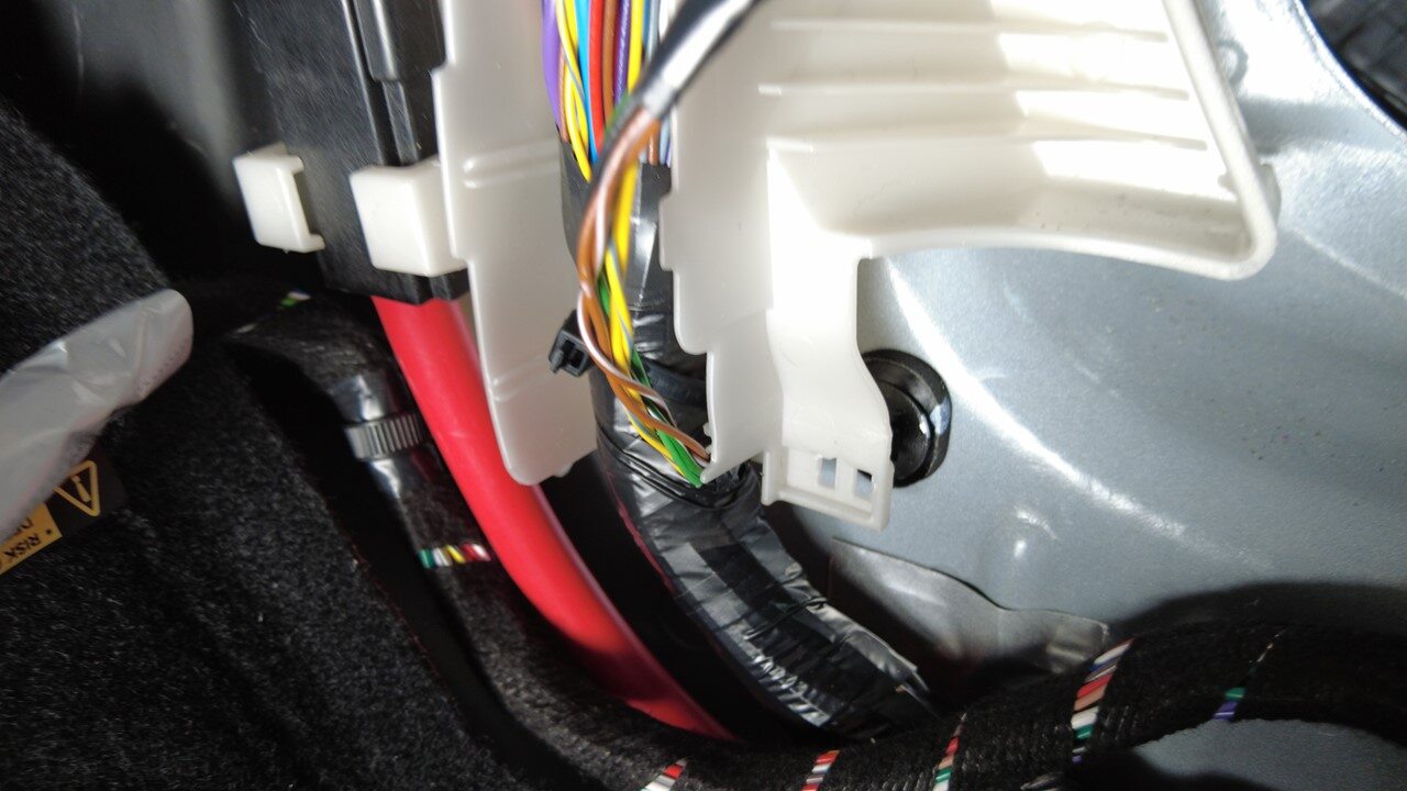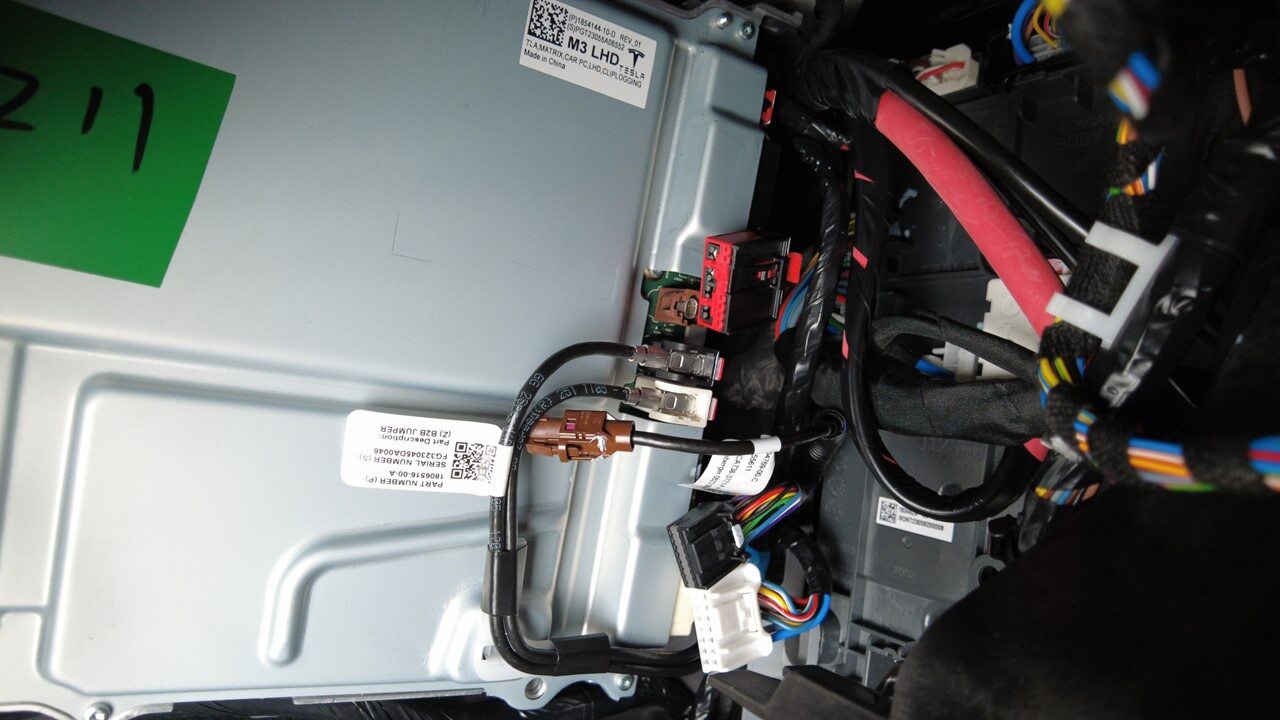 注First push the connector and wire harness backward, then fold sun visor to the closed and folded down position but do not latch in place