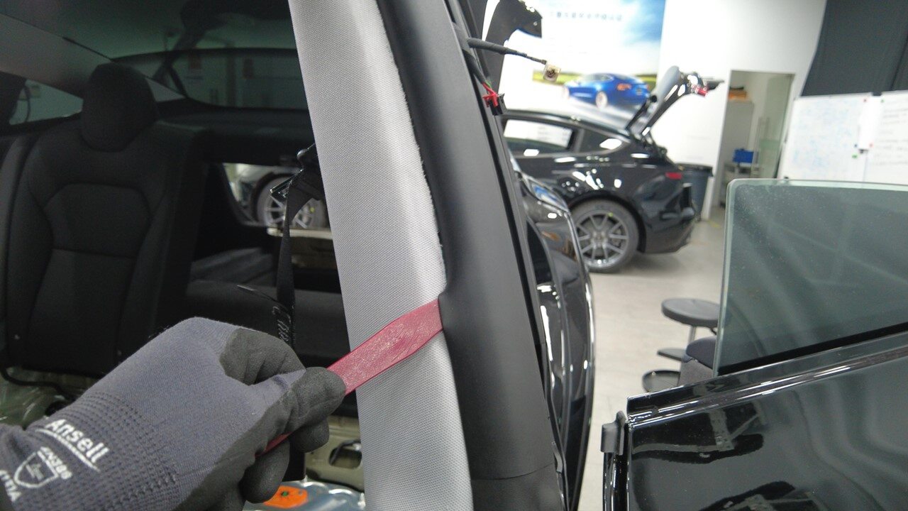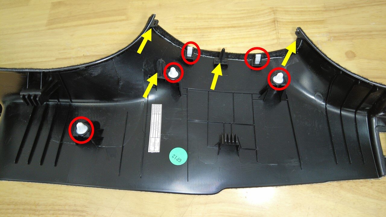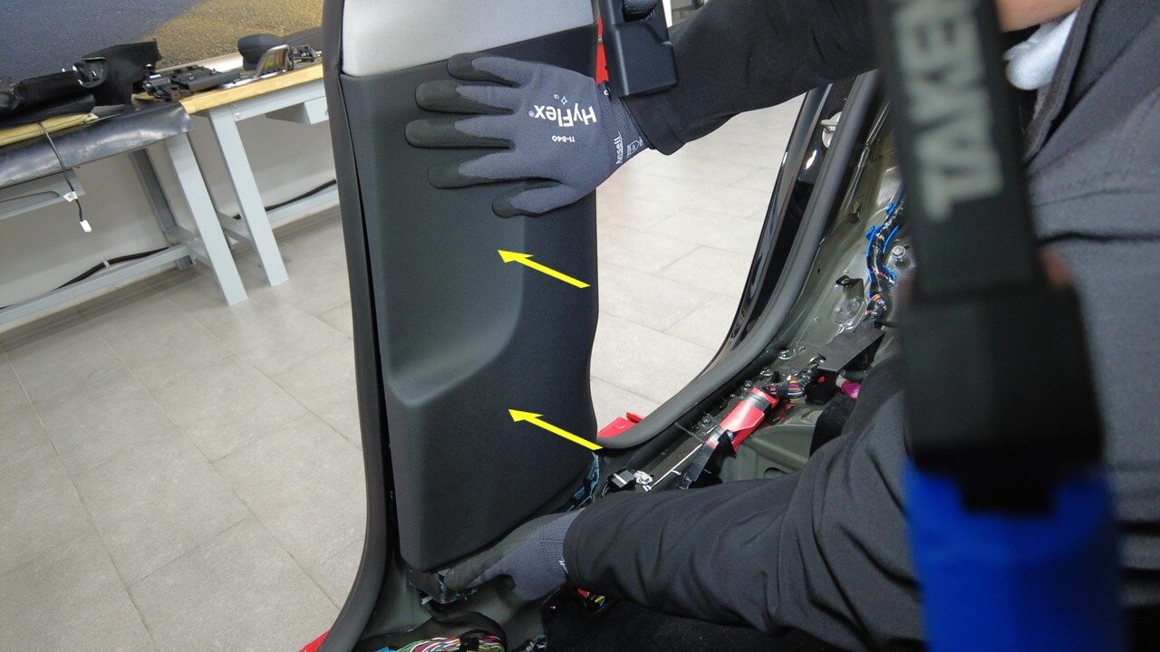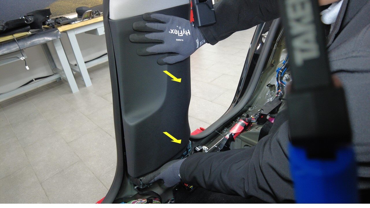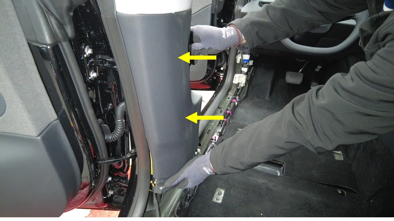 注3x clips,3x locator pins,Pull the bottom of the upper B-pillar toward inside of the car, then pull the top to release the remaining clips