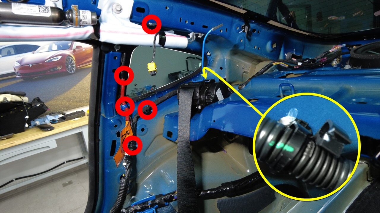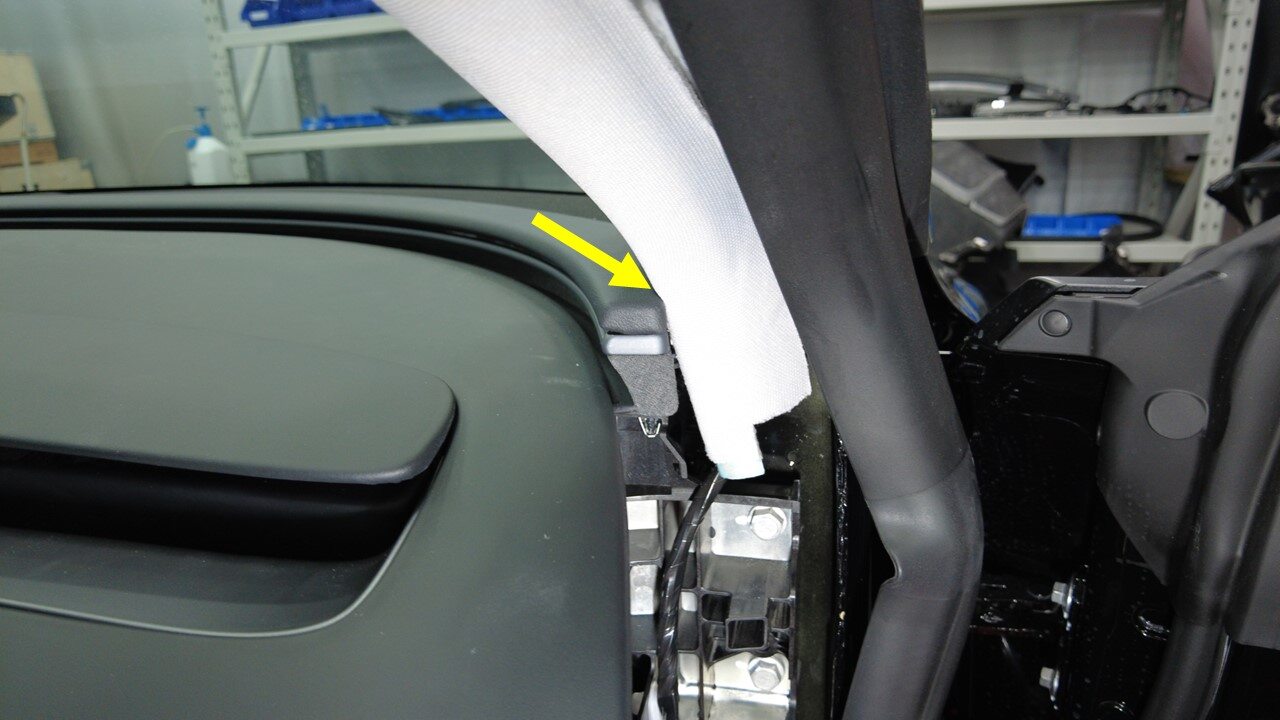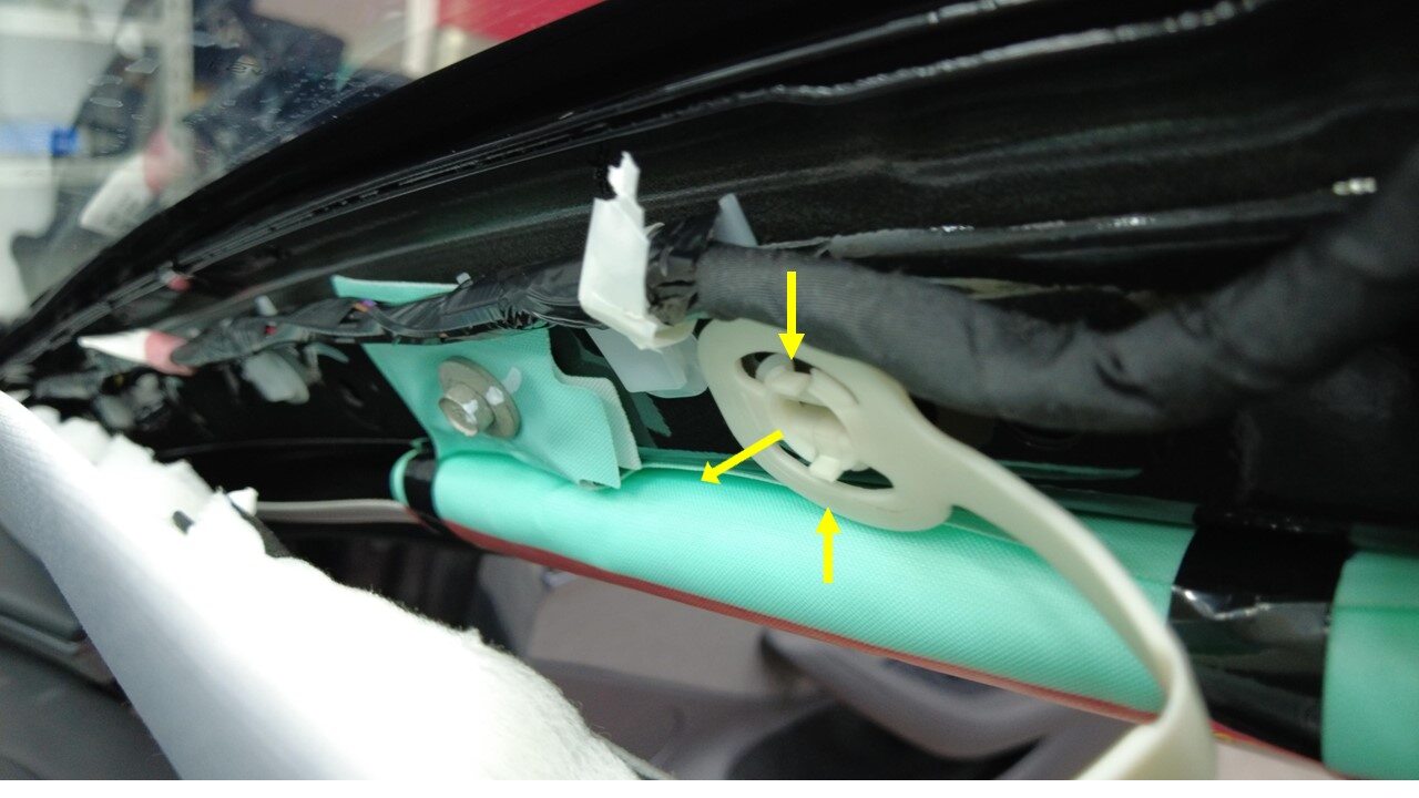 注6x clips, 1x tether, 2x guide tabs,1x alignment pin, Pull inside of the upper portion of upper A-pillar, Depress 2x tabs to remove tether from body side, Then pull upper A-pillar upward to remove