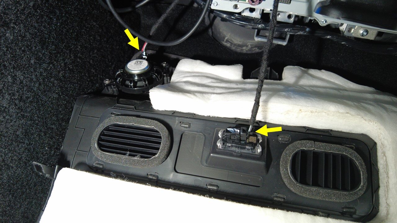 注6x clips, 1x tether, 2x guide tabs,1x alignment pin, Slide bottom of trim along IP and speaker grill, attach tether to body side, Set clips starting at the bottom and work up, Pull seal over trim