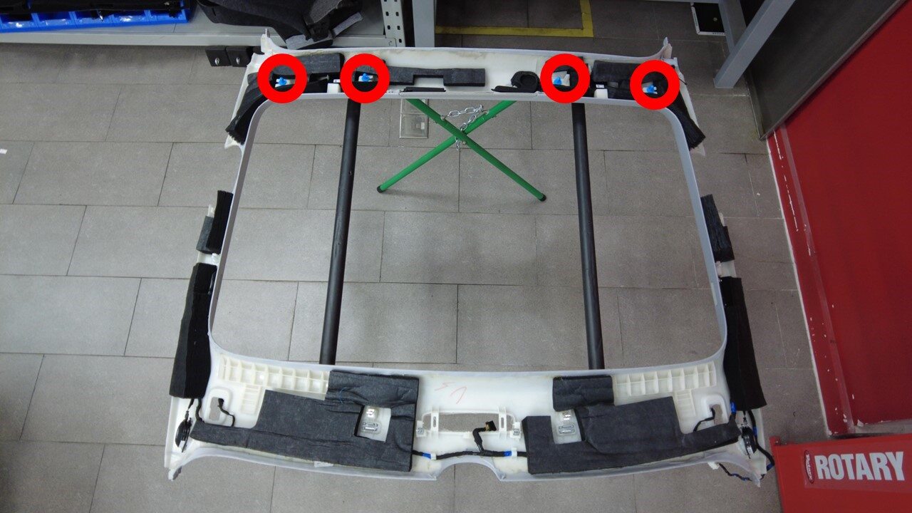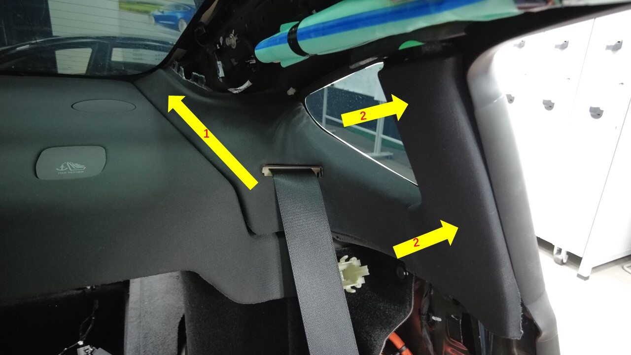 注4x clips, 2x locator pins,loosen the rear of the headliner to facilitate the next step
