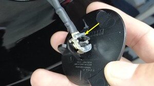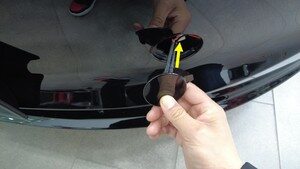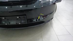 将左右拇指分别放在 1 点钟和 2 点钟位置,并将指节放在保险杠饰板表面,以支撑手部。使用左右拇指,对盖板的外边缘用力。