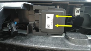 松开锁片,然后向右滑动 HomeLink 发射器模块,以便将其从车辆上拆下。