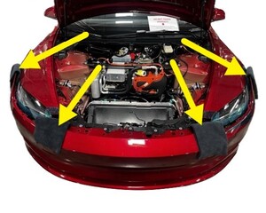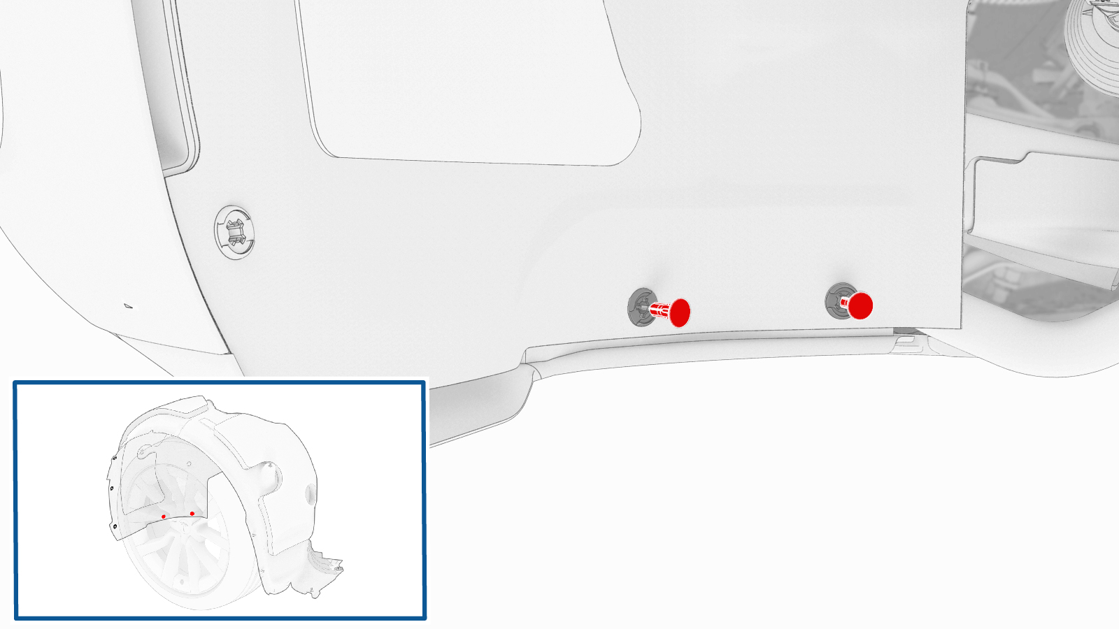 紧固将左前轮拱内衬固定到前饰板的卡子(5 个),然后将内衬移开,留出操作空间。