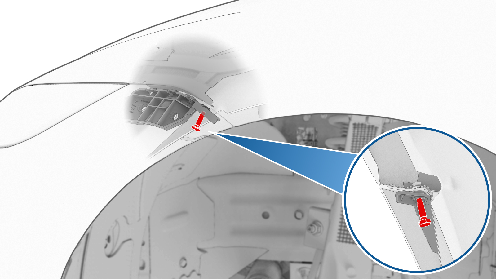 安装将前饰板固定到左前翼子板的螺栓。
