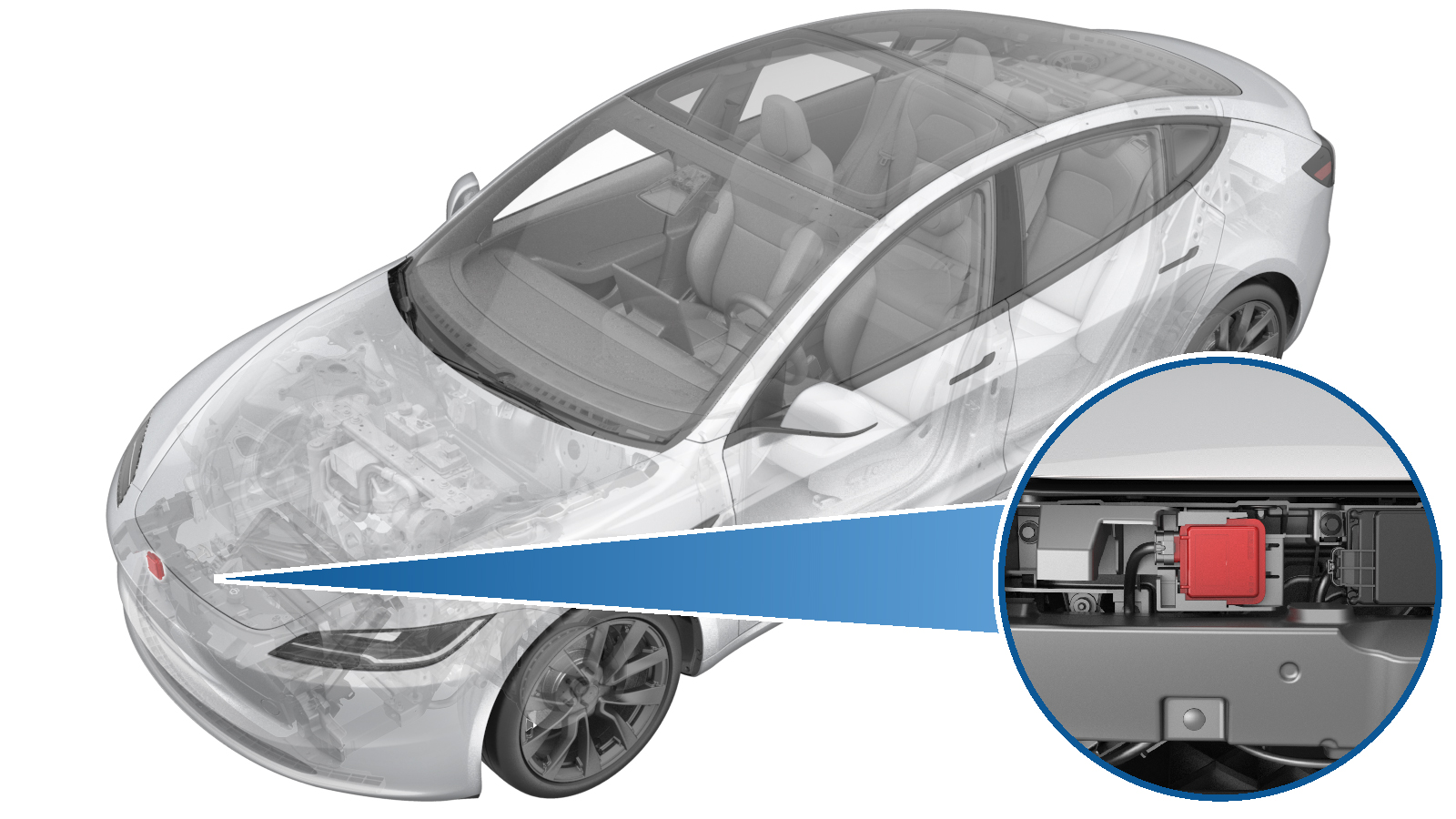 - 拆卸前备箱储物单元。请参阅前备箱总成 ((拆卸和更换))。