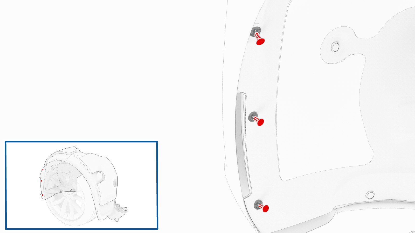 拆卸将左前轮拱内衬固定到前饰板的卡子(5 个),然后将内衬移开,留出操作空间。