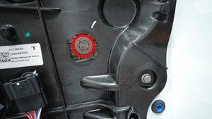 - 连接车窗开关专用工具,然后升起车门玻璃,以便能通过开口接触升降器隔离夹螺栓。
