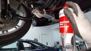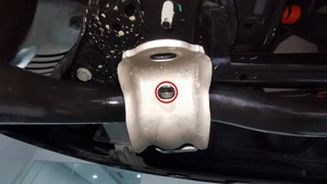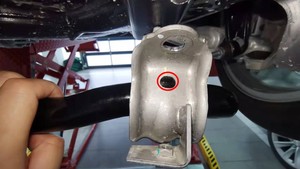 安装新的螺母(2 个),将左前平衡杆固定到副车架上,紧固螺母后,使用油性记号笔标记。