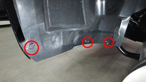 拆下将裙板左右侧固定到轮拱内衬的推拉式卡子(6 个)。