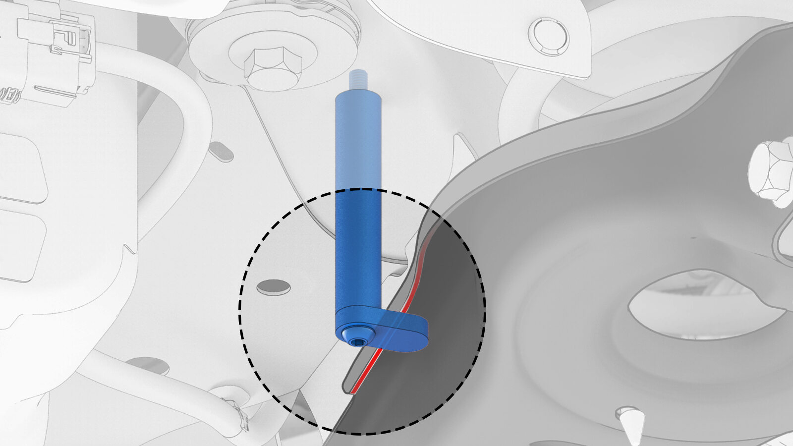 调整托臂支架和/或弹簧压缩机,使后部行驶高度扭矩工具的底梁靠在下尾连杆的底部边缘上(如图所示)。