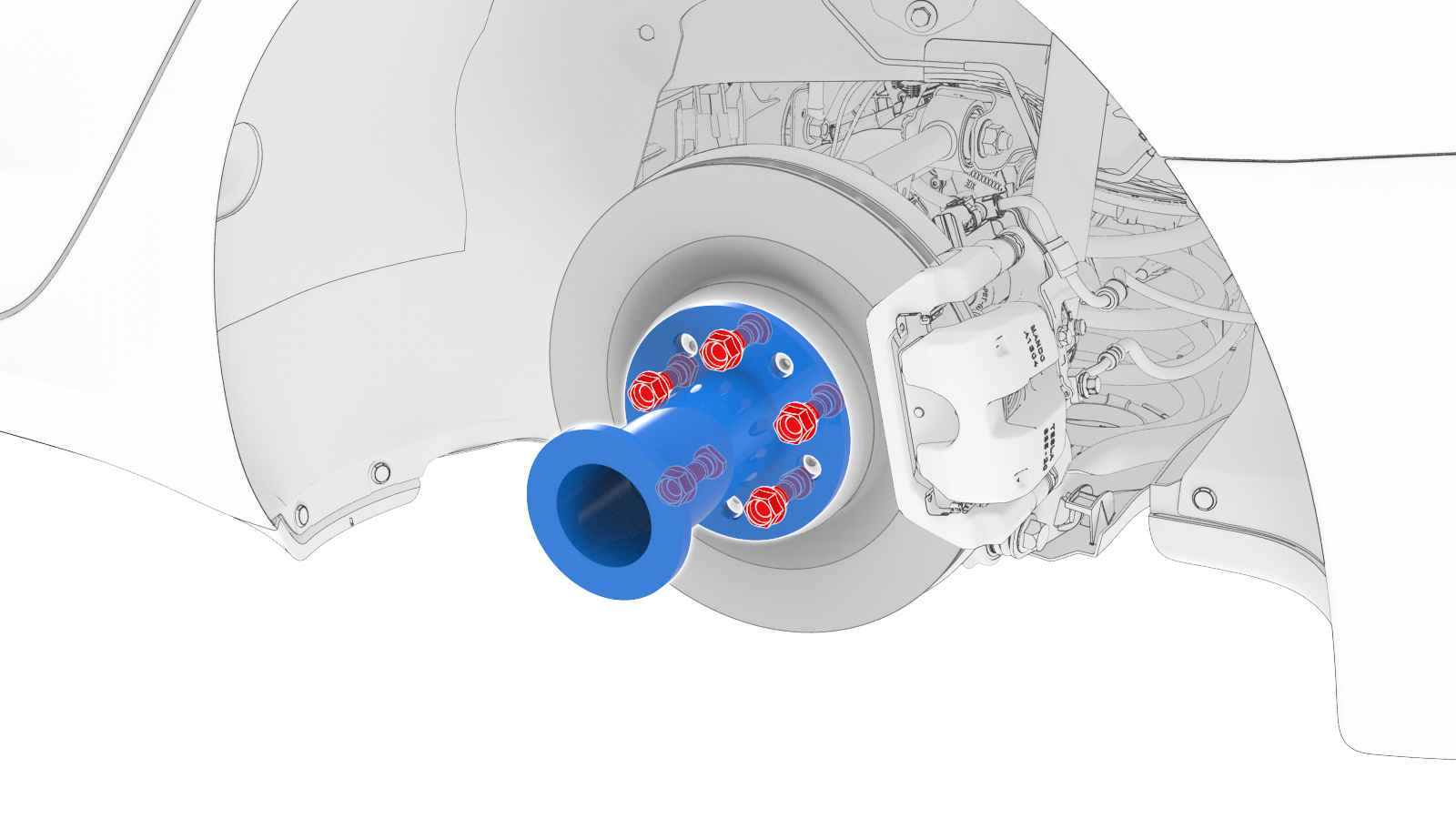 拆下固定轮毂千斤顶适配器的轮毂螺母 (x5),然后从车上拆下轮毂千斤顶适配器。